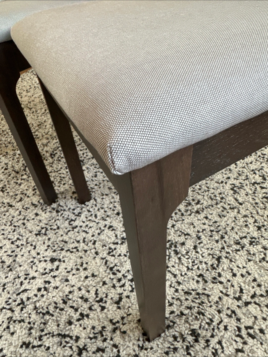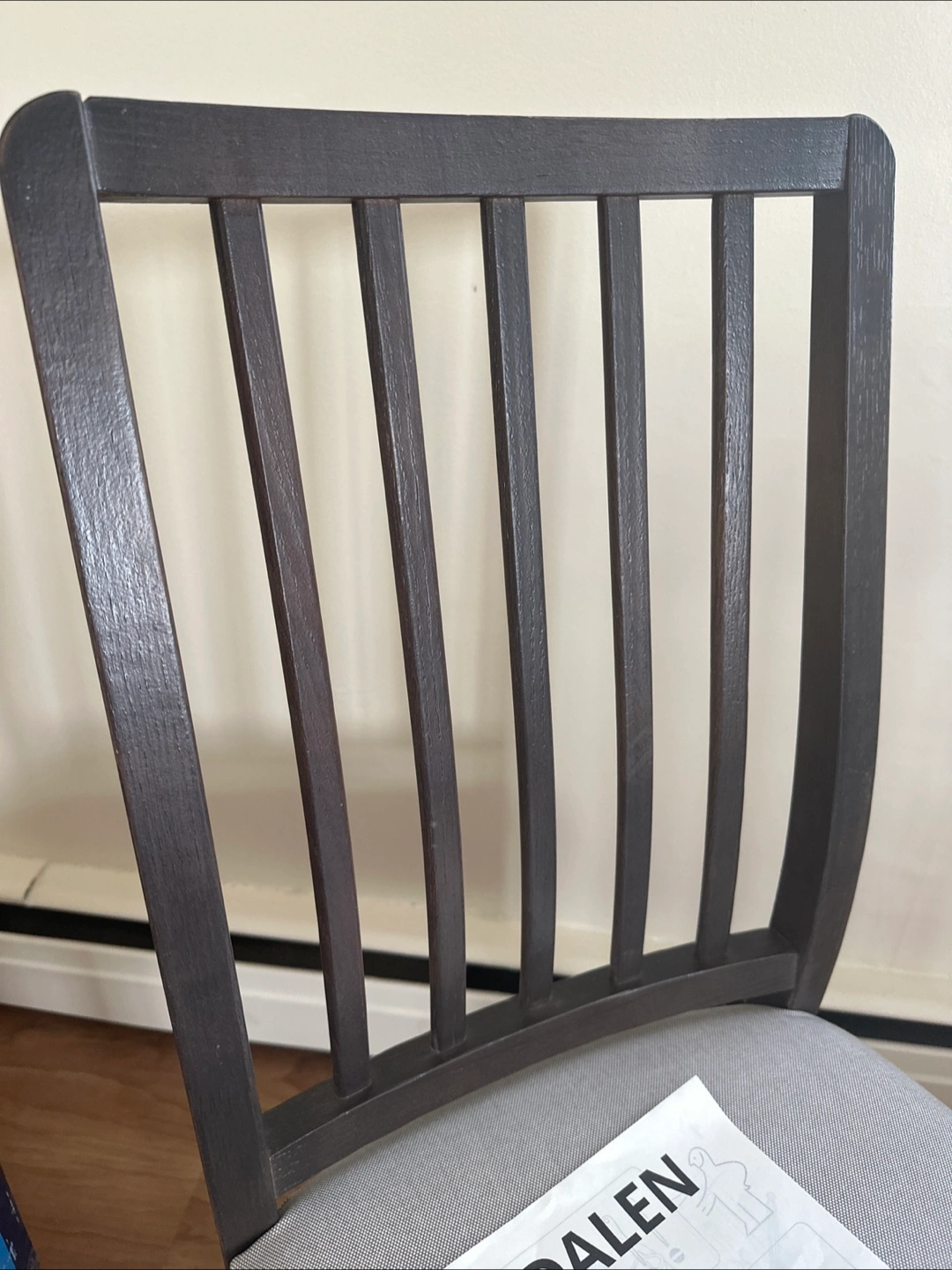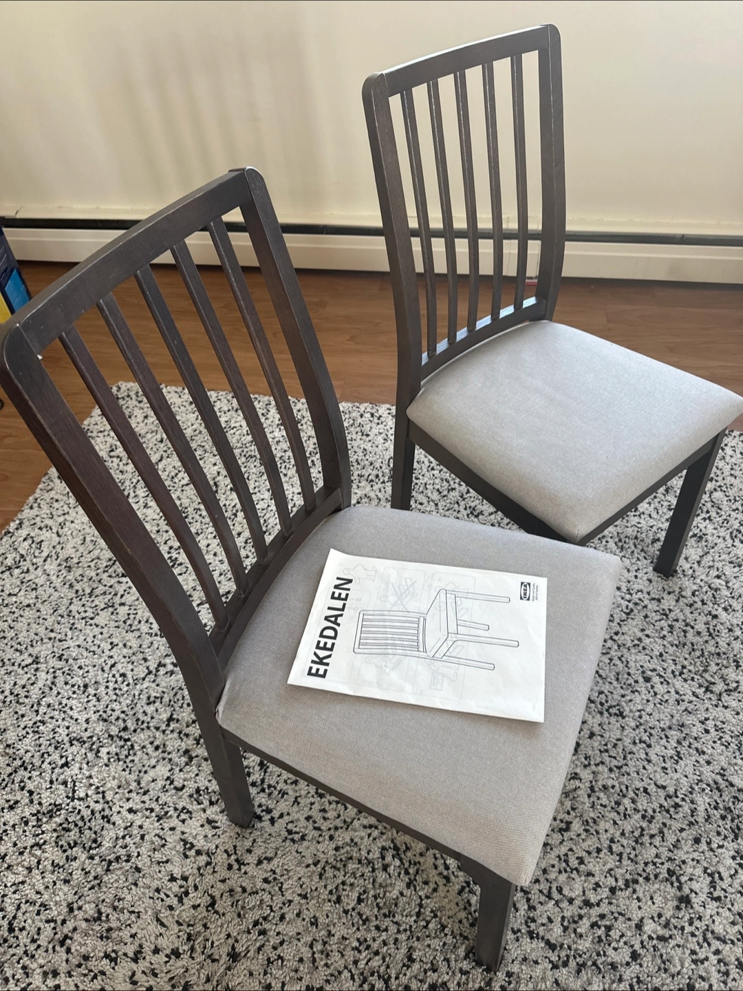 Selling two IKEA EKEDALEN chairs in great condition! They feature a dark brown frame and light grey upholstered seat. These chairs are super sturdy and comfortable, perfect for your dining room or kitchen. They are already assembled and ready to go!