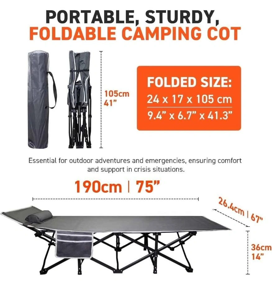 Camping Bed, Cots for Sleeping, Cot Bed, Camping Cots for Adults, Outdoor Bed, Camp Cot, Portable Bed for Adults (Grey).