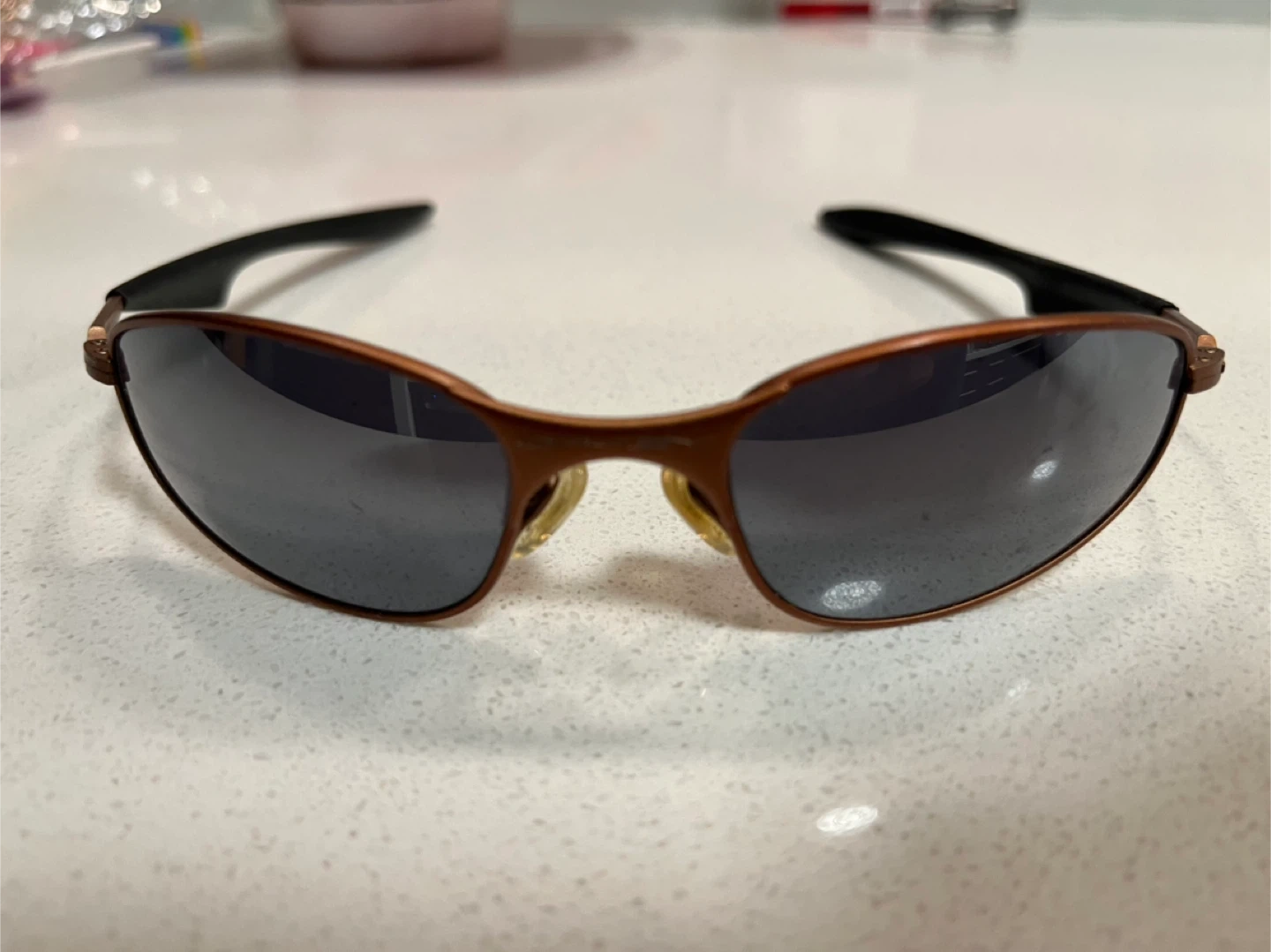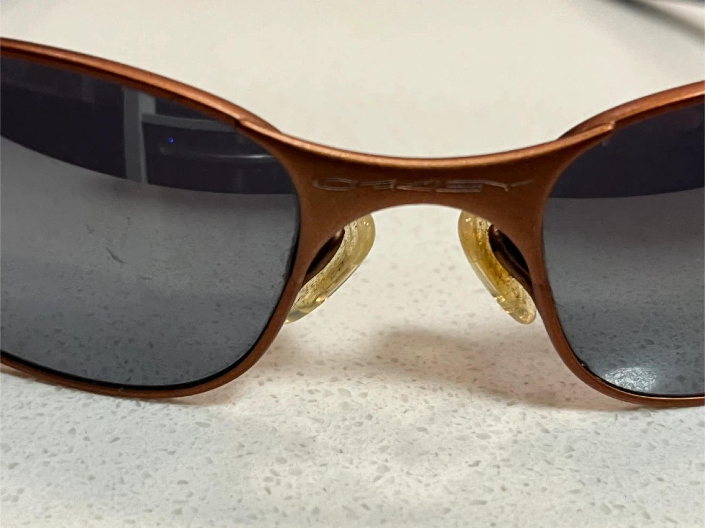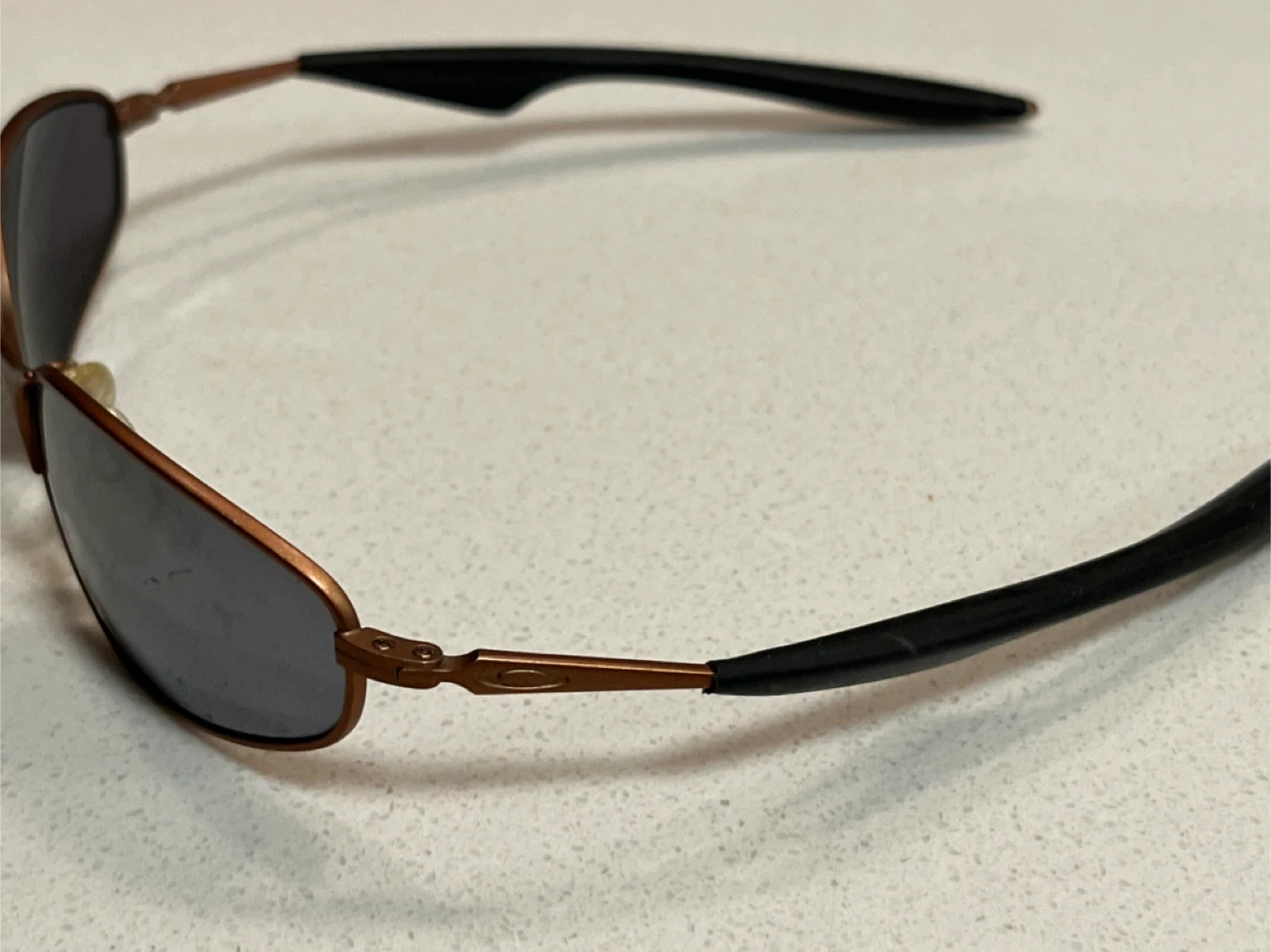 Buy & SellOakley SunglassesOakley Sunglasses$85These are Oakley sunglasses with a bronze frame and dark lenses. The frame appears to be metal. The temples are black.ConditionLike newBrandOakleyWHERE TO MEETCheck LocationView MapSELLERverifiedHuemanDon Mills and Sheppard911 review1 chats·1 favorites·11 viewsSEND CHAT TO SELLERHi Hueman! I’m interested in your listing.Hi Hueman! I’m interested in your listing.Get the Karrot app to chatSign In to chat