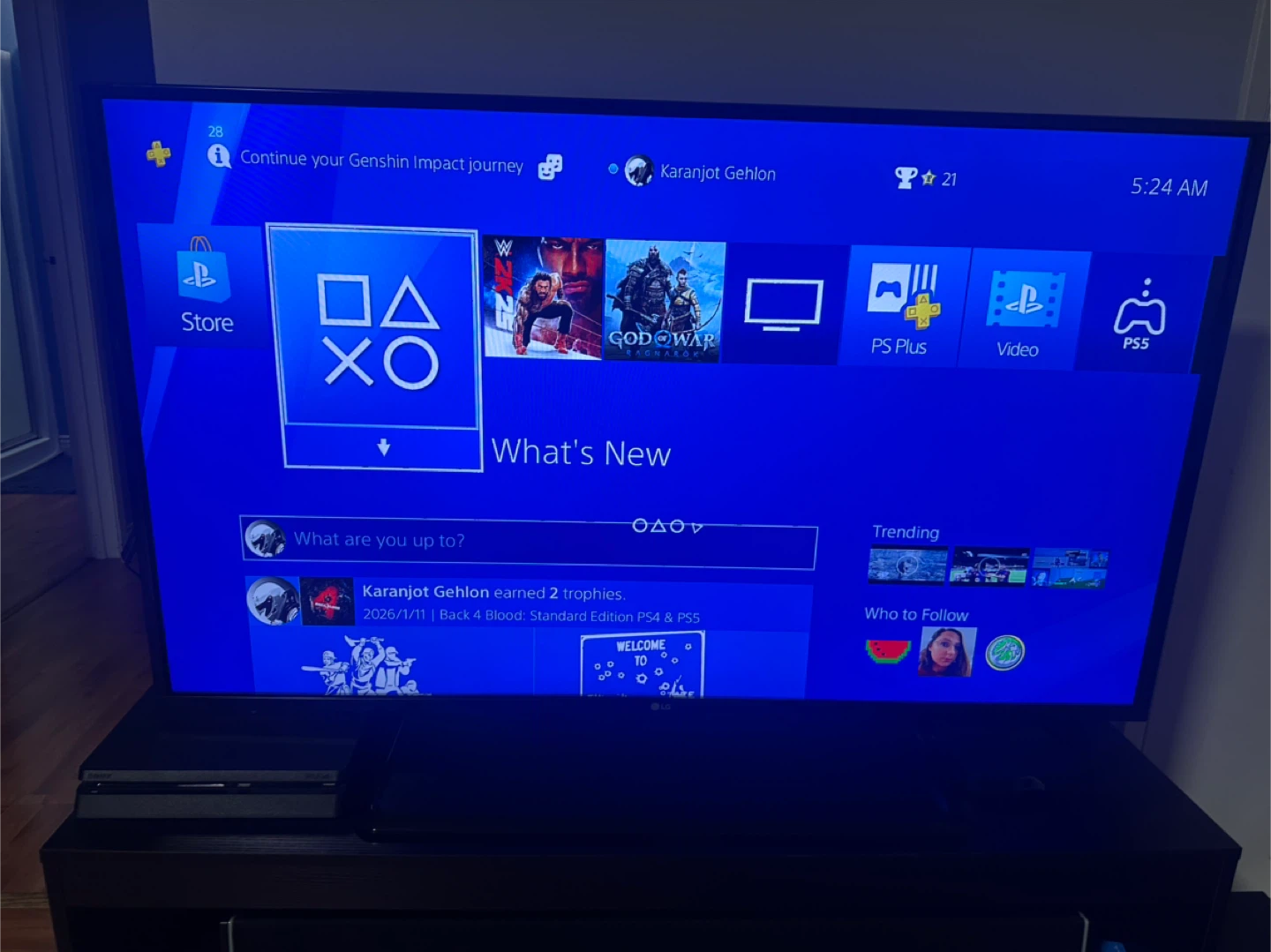 Sony PlayStation 4 Slim with 1TB storage, fully functional and runs smoothly. Comes with 2 controllers and 7 PS4 games, ready to play.