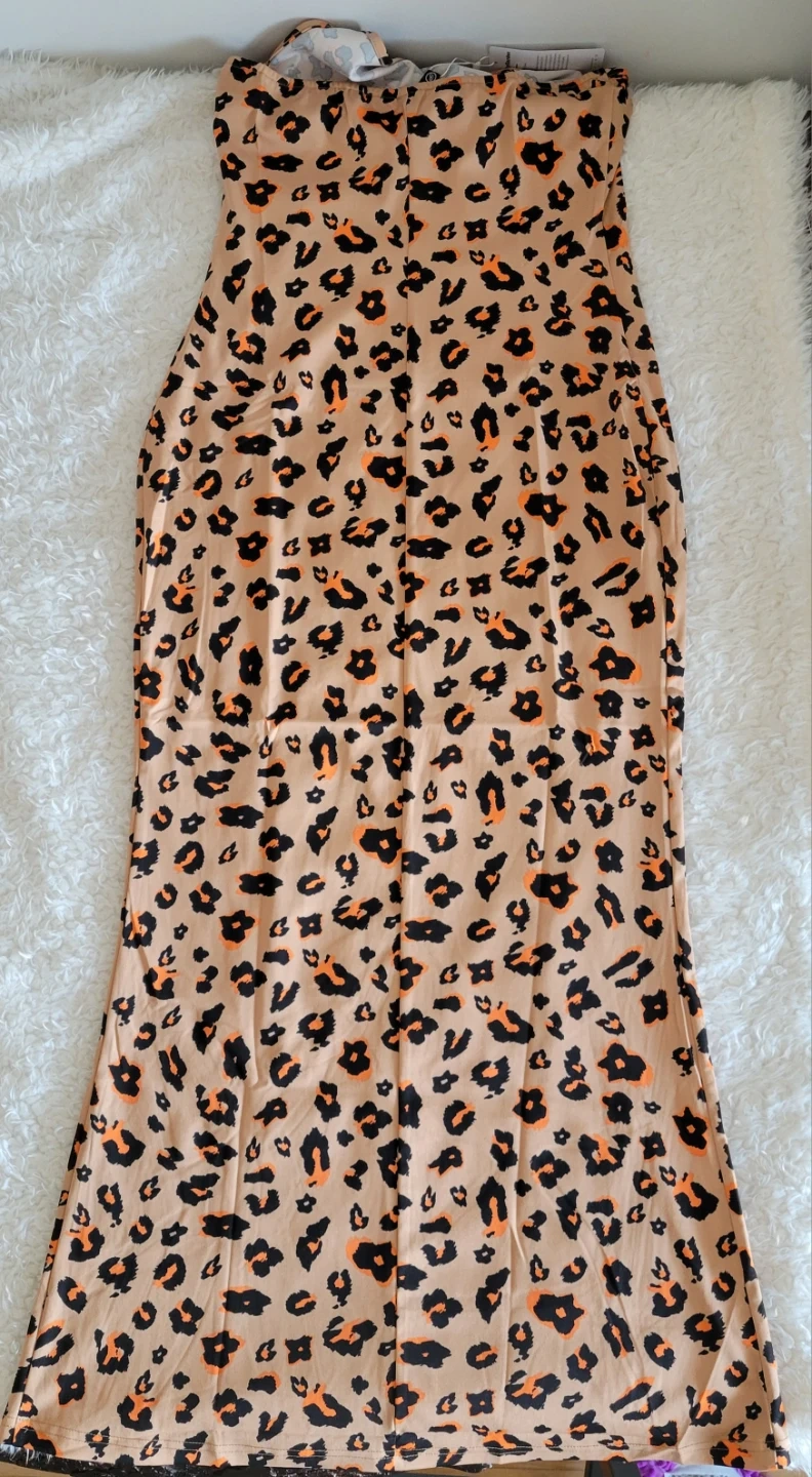 Embrace your wild side with this stunning brand-new with tag still attached lepoard print maxi dress, perfect for making a statement.