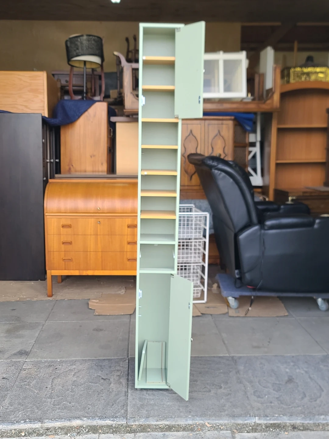 Tall Mint Green Storage Cabinet w/ Shelves