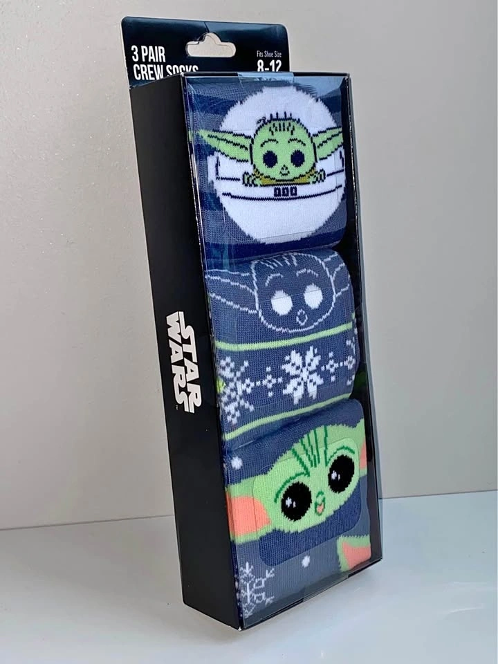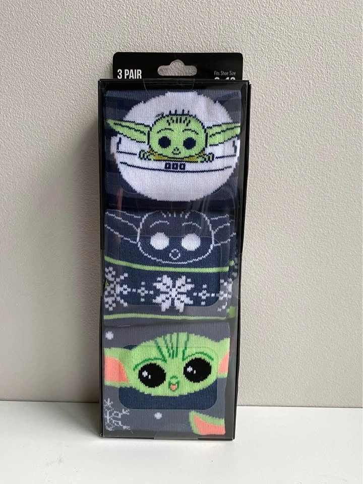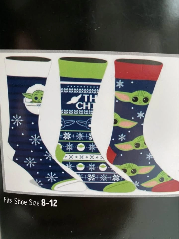 Brand new, last box! Includes three pairs of crew socks with Star Wars designs. Fits shoe size 8-12, unisex. Men's and Women's Fun Holiday T-shirt Designs also available. Search "T-shirt" in my listings. Star Wars socks, Baby Yoda Socks, The Child socks, Yoda Socks, Christmas socks, holiday socks, crew socks, unisex socks, Men’s socks, Women’s sock, holiday gift, stocking stuffer, novelty socks, festive socks.