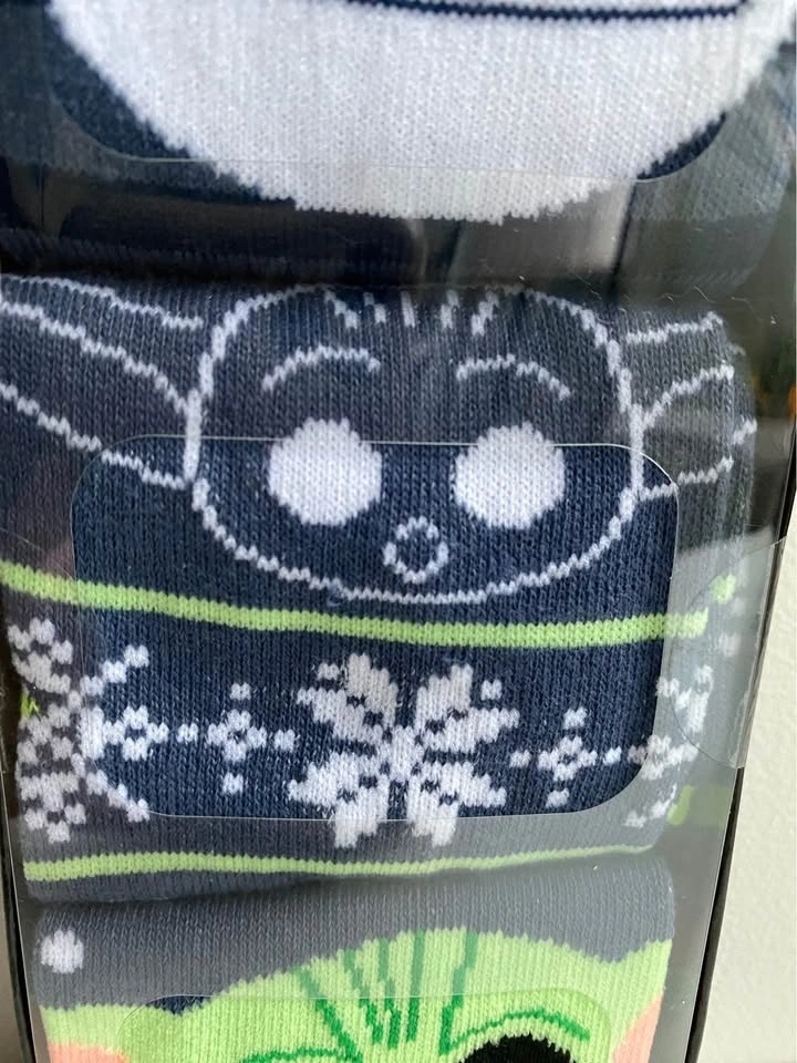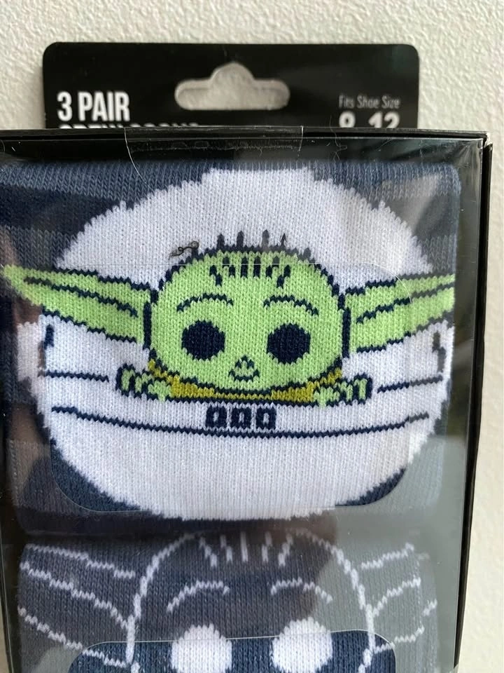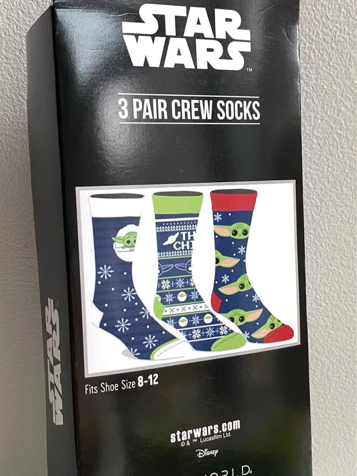 Brand new, last box! Includes three pairs of crew socks with Star Wars designs. Fits shoe size 8-12, unisex. Men's and Women's Fun Holiday T-shirt Designs also available. Search "T-shirt" in my listings. Star Wars socks, Baby Yoda Socks, The Child socks, Yoda Socks, Christmas socks, holiday socks, crew socks, unisex socks, Men’s socks, Women’s sock, holiday gift, stocking stuffer, novelty socks, festive socks.