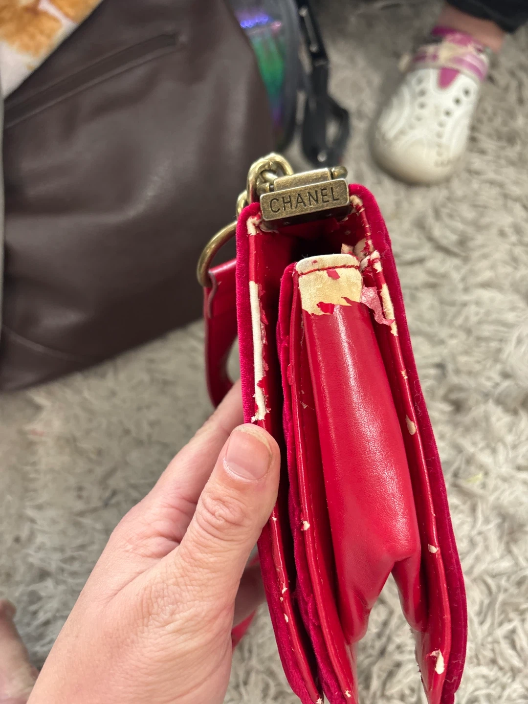 Chanel Red Velvet Quilted Shoulder Bag