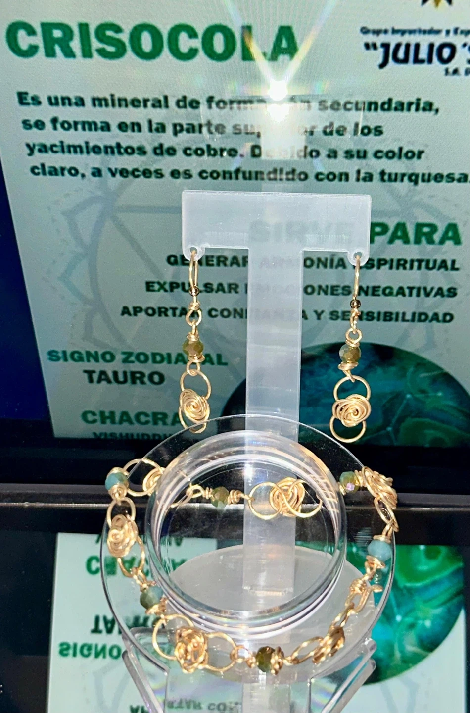 Handmade "Crisocola" Charm Bracelet and Earrings Set