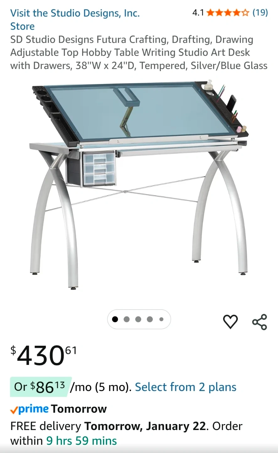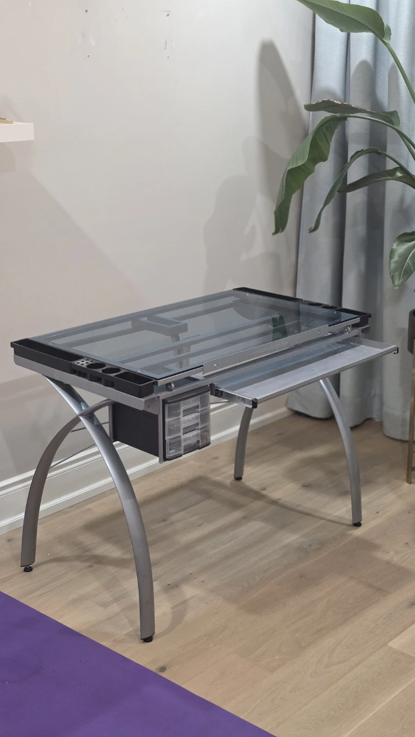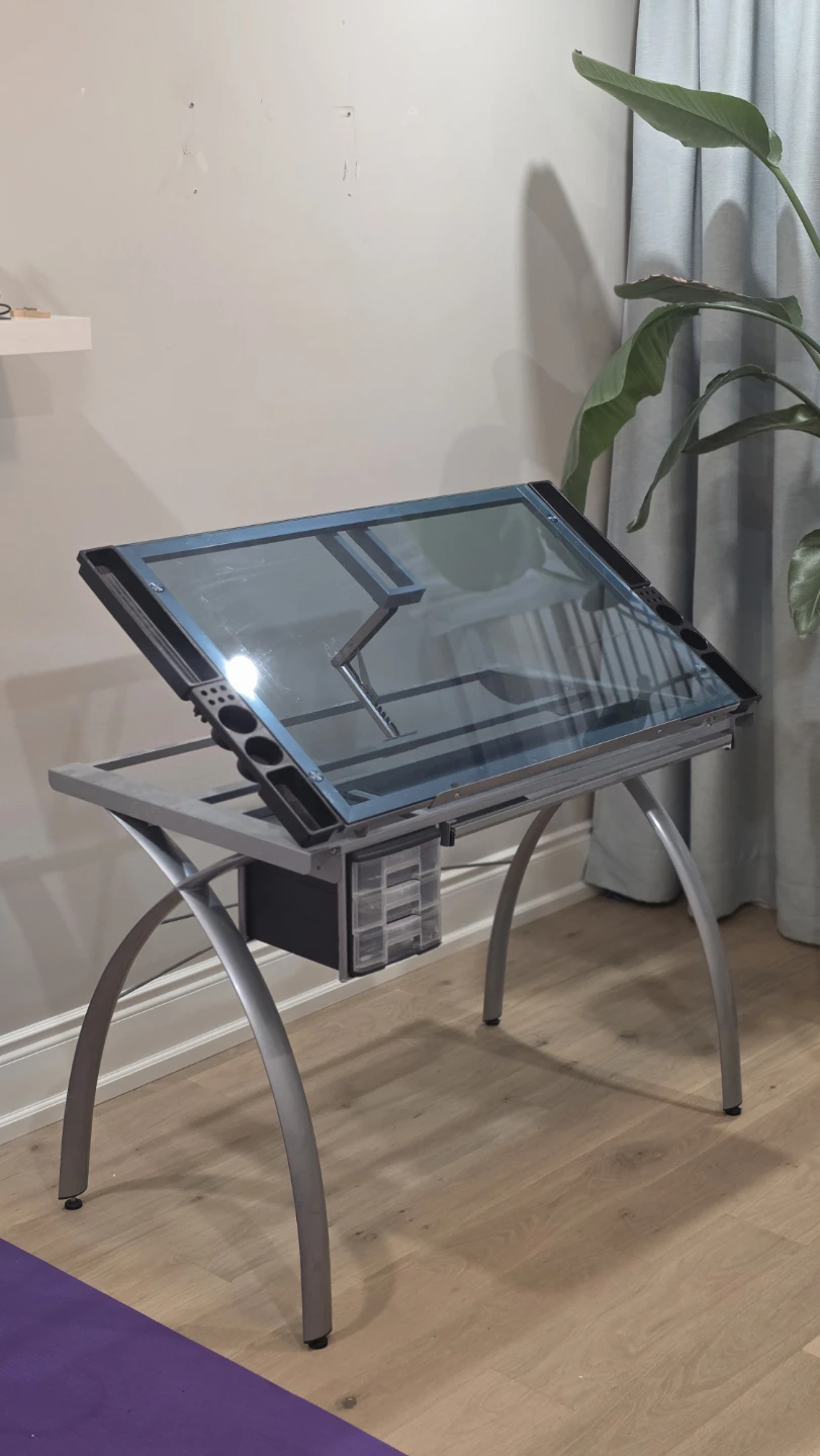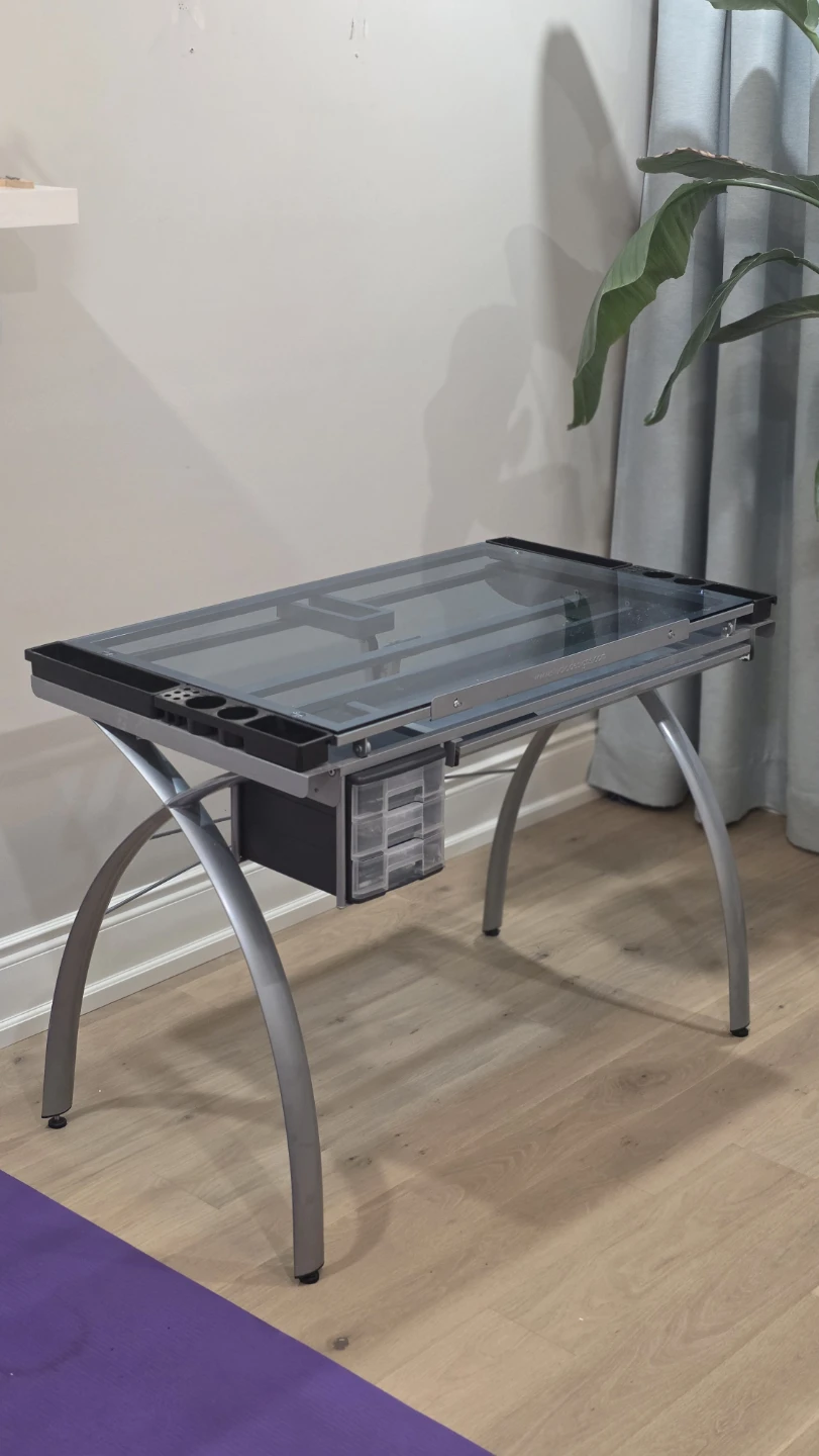 Looking to part ways with my drafting table. It's in great shape and perfect for any artist or designer. The glass top is adjustable, and it has storage drawers for all your supplies. It's a Studio Designs Pro Craft Station, super sturdy with a sleek design! $486 after tax for brand new