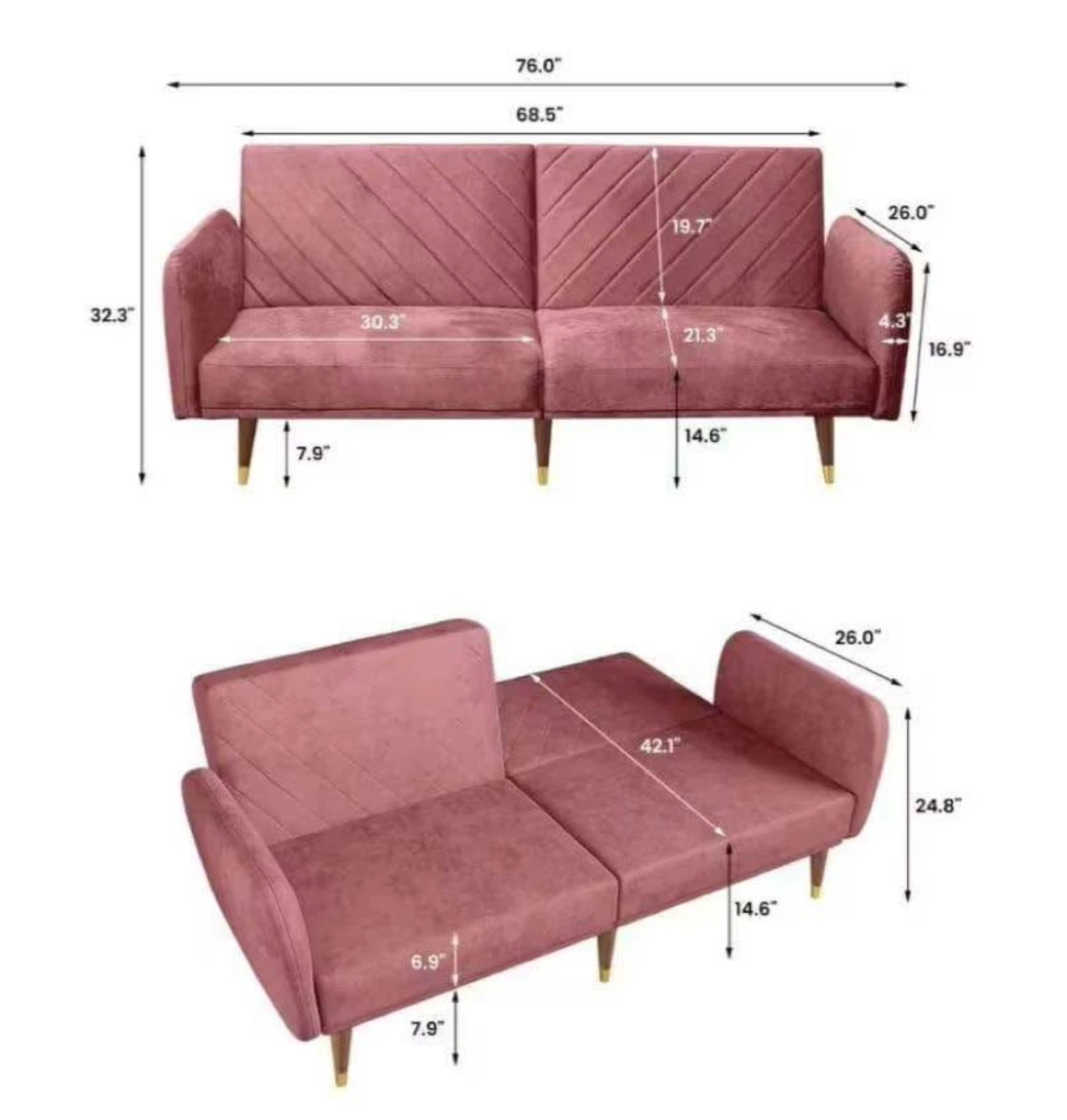 Selling a stylish pink velvet loveseat sofa. It's NEW in THE BOX and would look lovely in any living space.