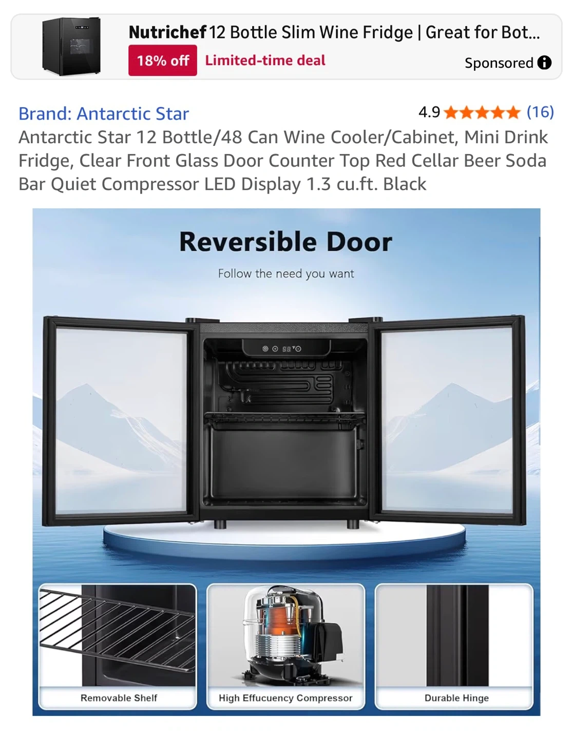 Keep your drinks cool with this Antarctic Star 12 Bottle/48 Can Wine Cooler! It features a mini drink fridge with a clear front glass door. It's a countertop red cellar bar with a quiet compressor and LED display. The capacity is 1.3 cu ft PRICE NEGOTIABLE