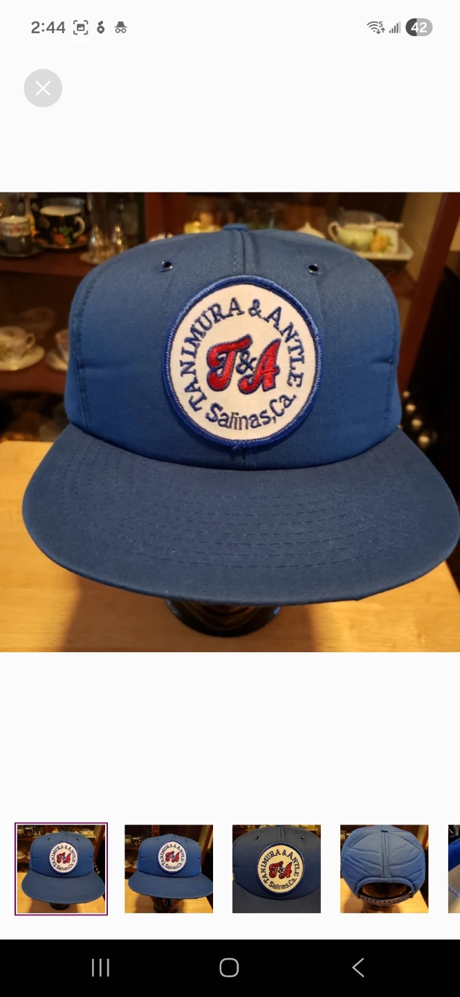 T&A hat: This is a blue snapback hat from Tanemura & Antle. It has an adjustable strap for a comfortable fit. It's a classic baseball cap style.