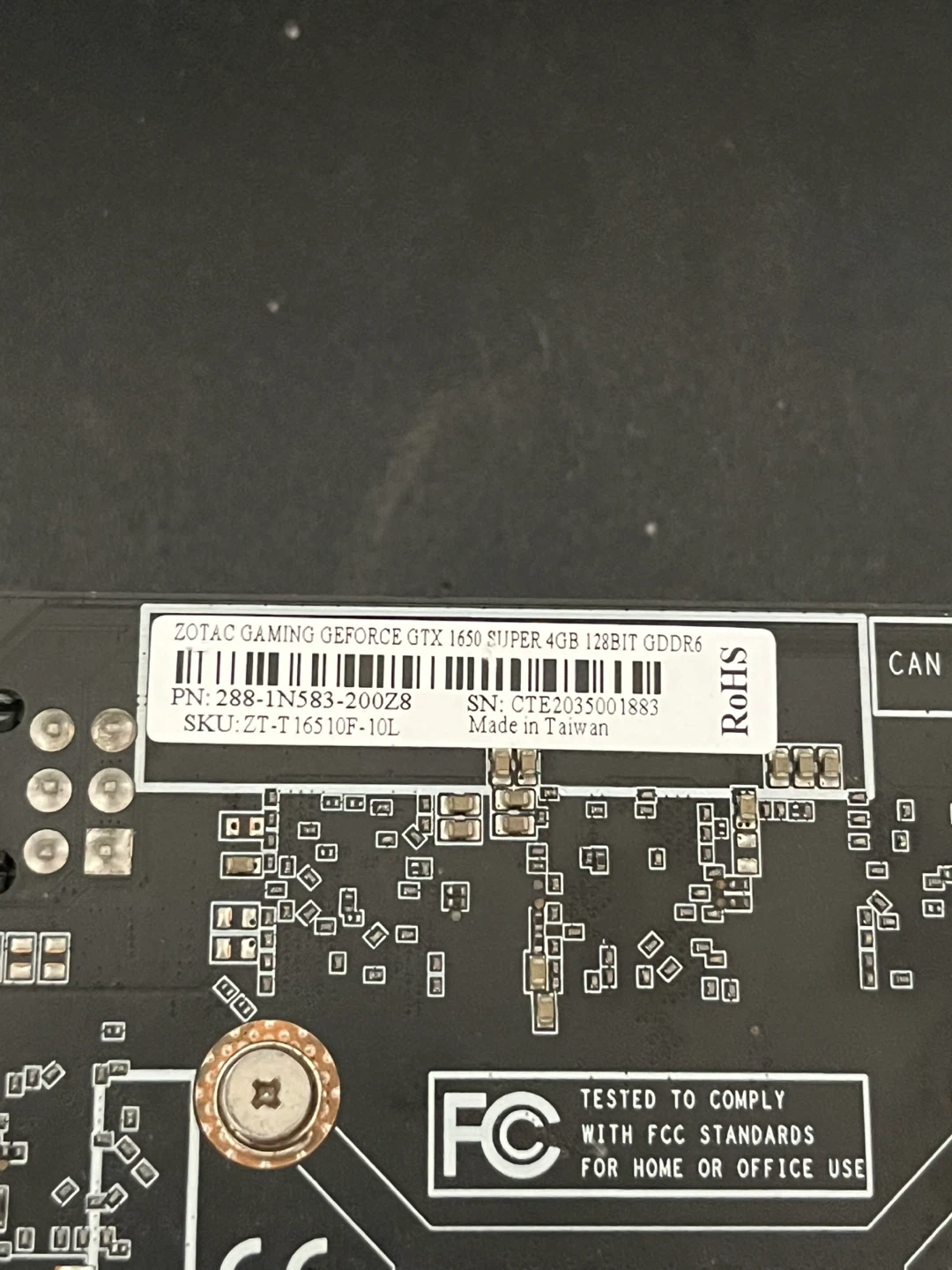 This is a Zotac Gaming GeForce GTX 1650 Super graphics card. It comes with 4GB of GDDR6 memory and a 128-bit memory interface. The card features two cooling fans and outputs including HDMI, DisplayPort, and DVI-D.