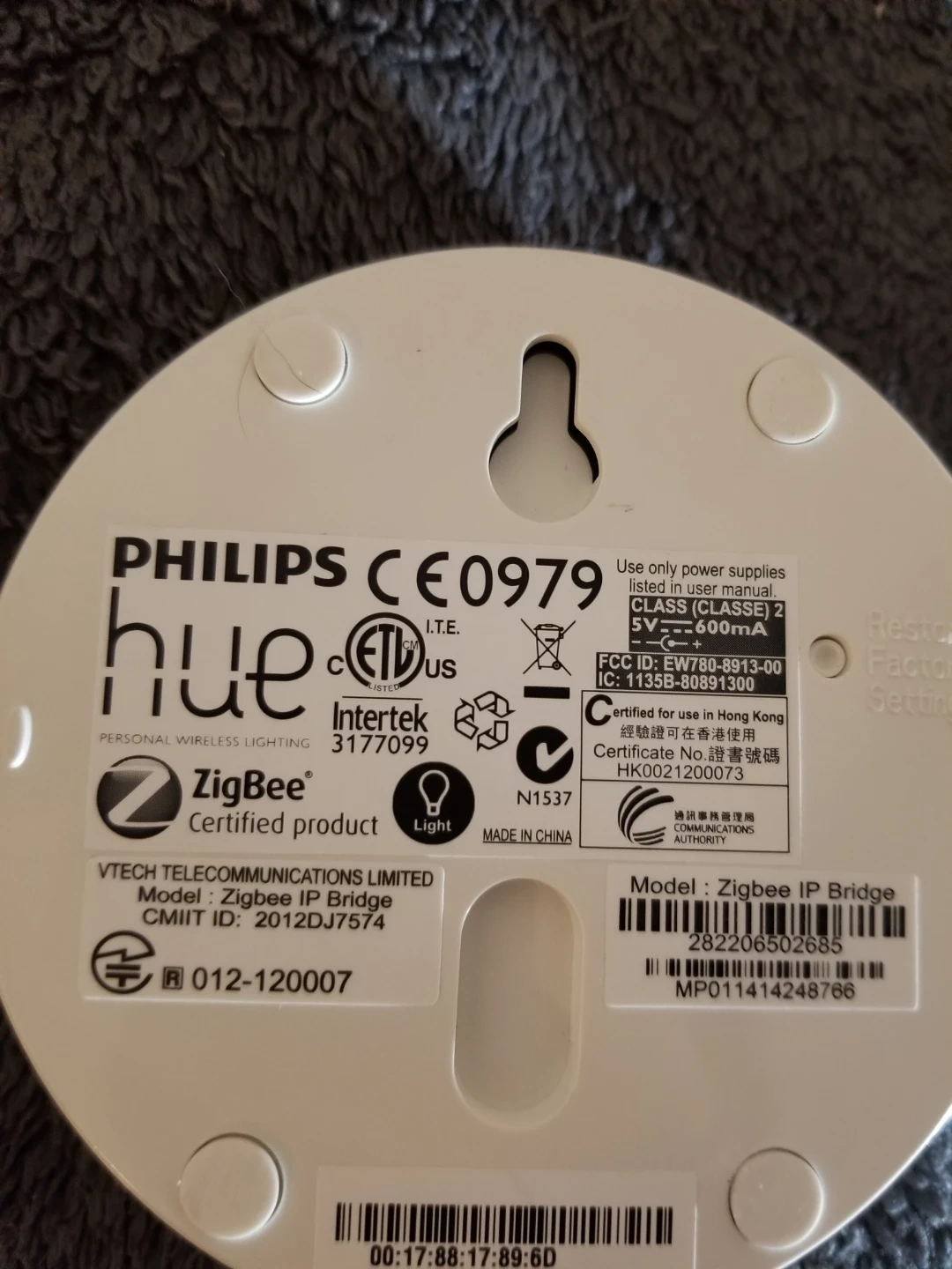 Selling a Philips Hue Zigbee IP Bridge IP CE0979 w/power supply for $15 or best offer!