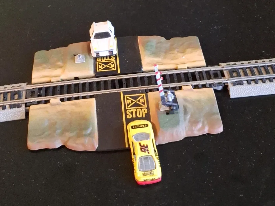 This set includes two N scale train crossing gates . Adds realistic detail to your train layout!