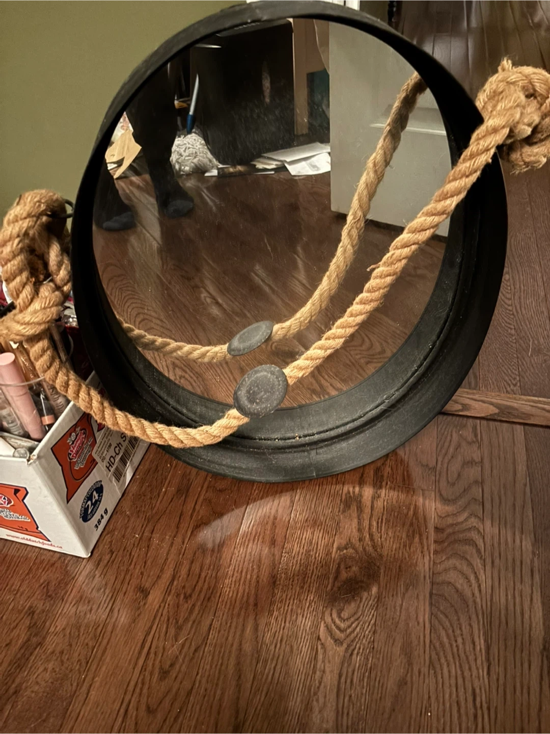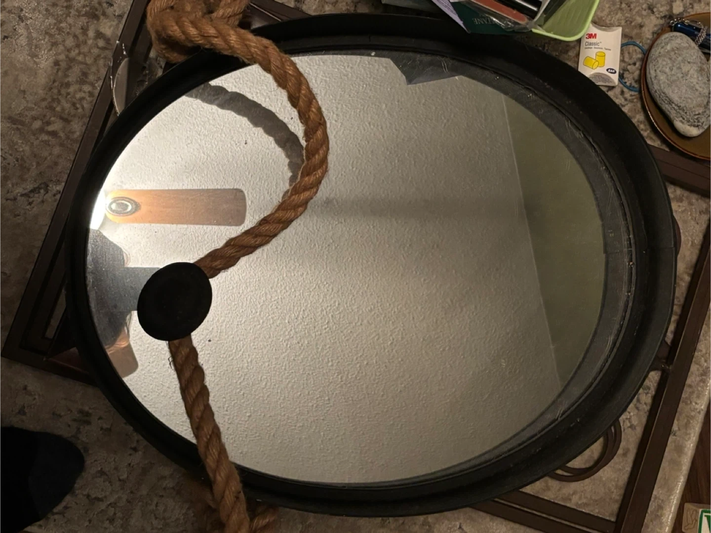 Round Wall Mirror with Rope Hanger