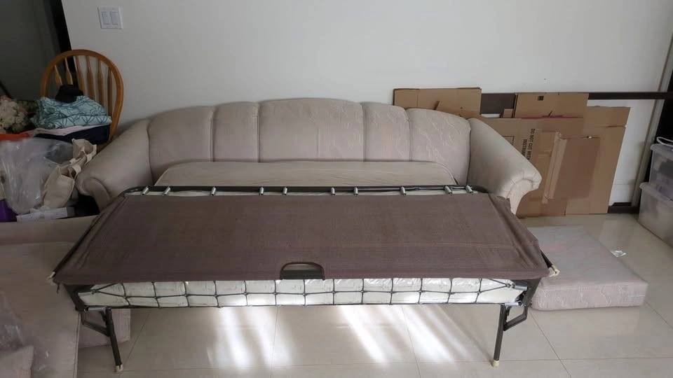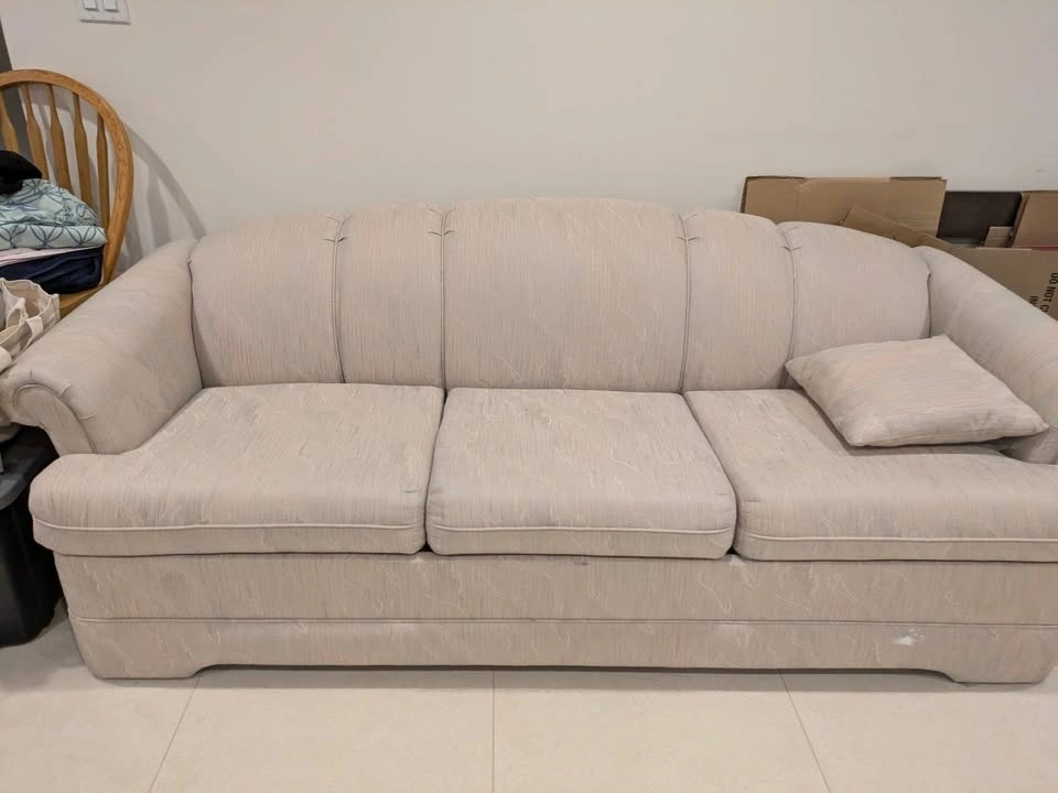 Sturdy and clean 3 seater sofa bed for sale. Easy to set up and convert to bed and couch. Mattress is 70 inch by 60 inch (sofa queen) and is still in the plastic wrap. Dimensions: 82 inches wide, 34 inches long, 24 inches tall (folded up). Pick up in Vancouver only, near the Fraserview area. In excellent condition and clean.