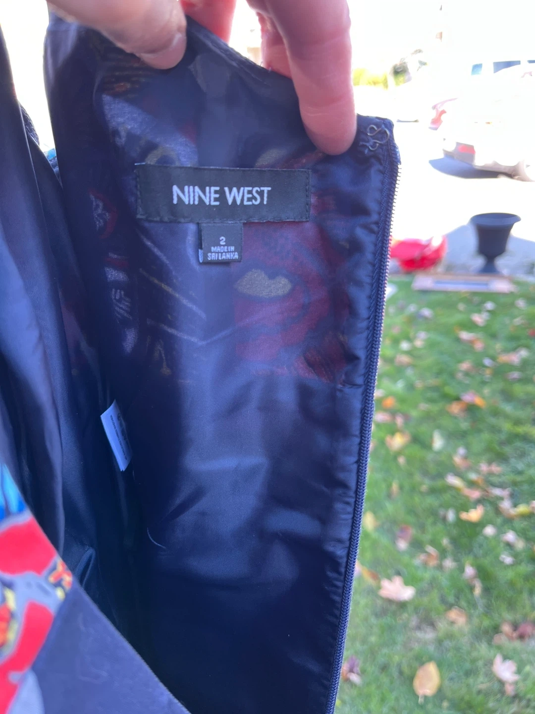 Selling a beautiful Nine West dress in size 2. It features a vibrant floral pattern on a navy background. Perfect for a special occasion or a fun day out!