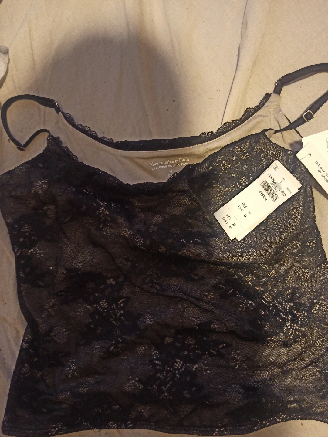 Selling an Abercrombie & Fitch cami top! It's a beautiful lace design and is a size medium. The tag shows the original price was US$35 or CAN$45. Asking 25$ cdn