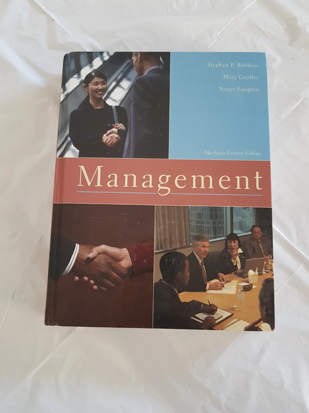 Management textbook. This is the MacEwan Custom Edition. Authors are Stephen P. Robbins, Mary Coulter, and Nancy Langton. Published by Pearson. Useful for business and management studies.