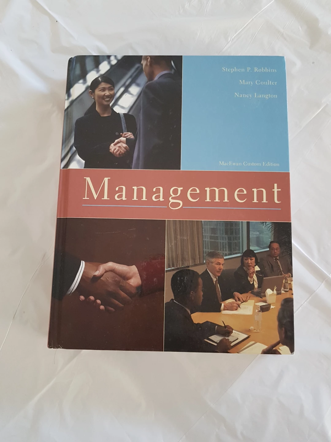 Management textbook. This is the MacEwan Custom Edition. Authors are Stephen P. Robbins, Mary Coulter, and Nancy Langton. Published by Pearson. Useful for business and management studies.