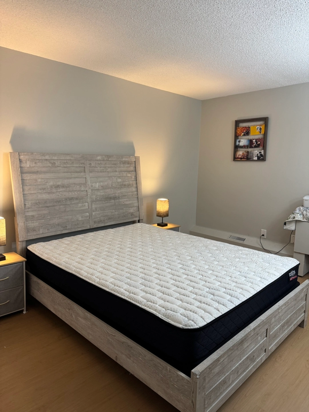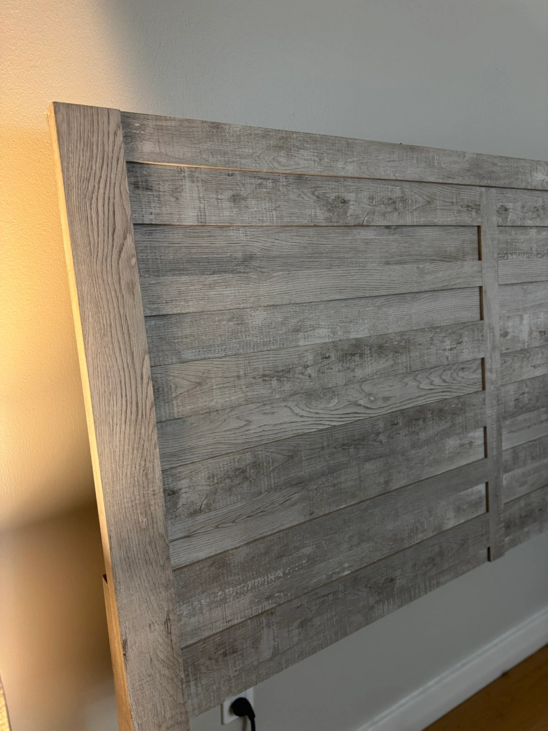 Selling a beautiful Queen Size bed in excellent condition, gently used and well maintained. It has a modern rustic look with a weathered grey faux wood finish that’s easy to care for and adds a cozy, stylish vibe to any bedroom.
