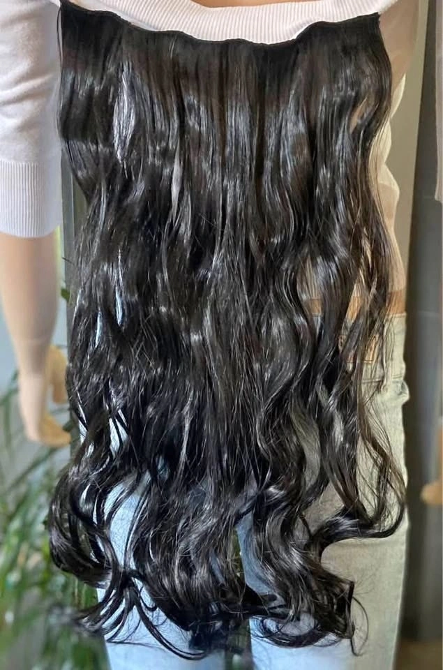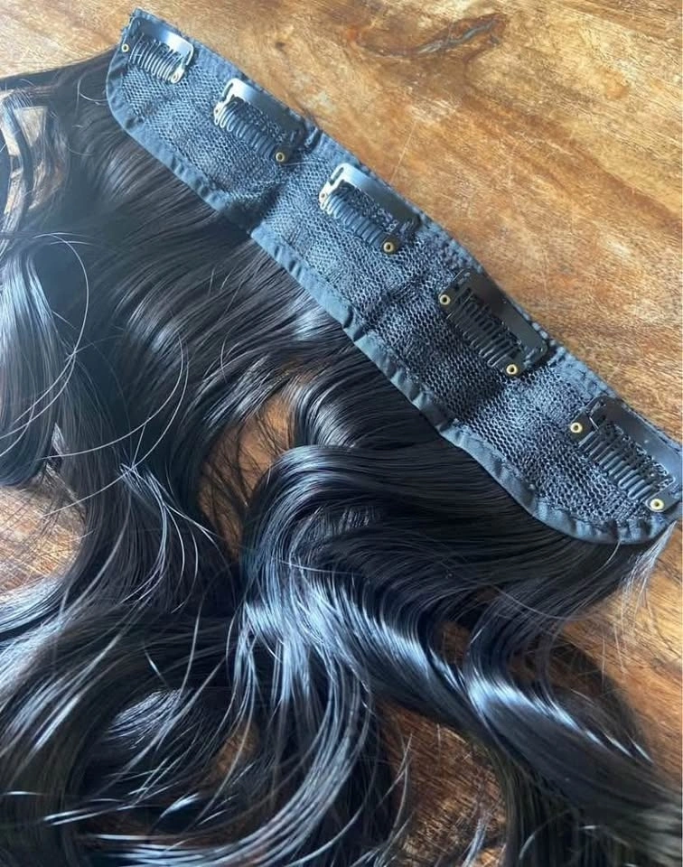 LIKE NEW: 20” Clip-In Curly Synthetic Hair Extensions Blk 335