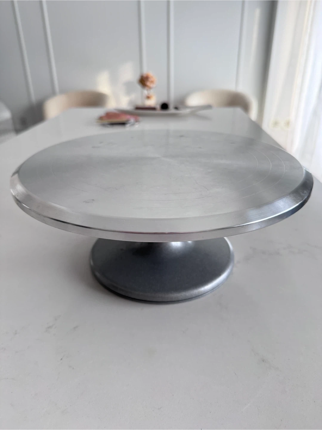 Selling a Premium Aluminium 12" Cake Stand with Anti-Slip Base! It has a smooth rotation for cake decorating. Perfect for any baker! The dimensions are 12.1" x 3.8". Originally bought for $44 plus tax.