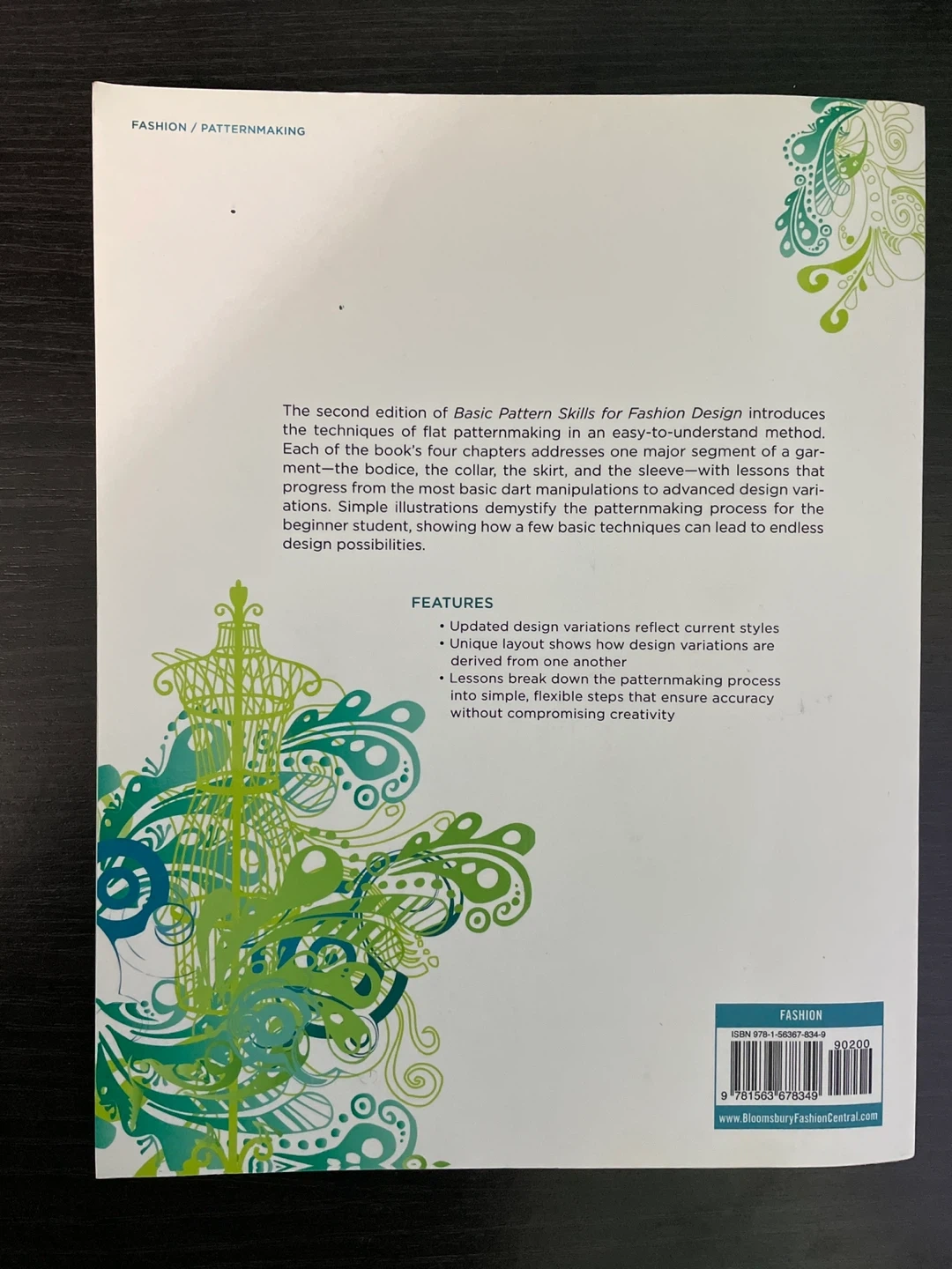 Selling a copy of "Basic Pattern Skills for Fashion Design, Second Edition" by Bernard Zamkoff and Jeanne Price. This book introduces the techniques of pattern making in an easy-to-understand method. It covers updated design variations, unique layout showing how designs are derived, and lessons breaking down the patternmaking process into simple steps.