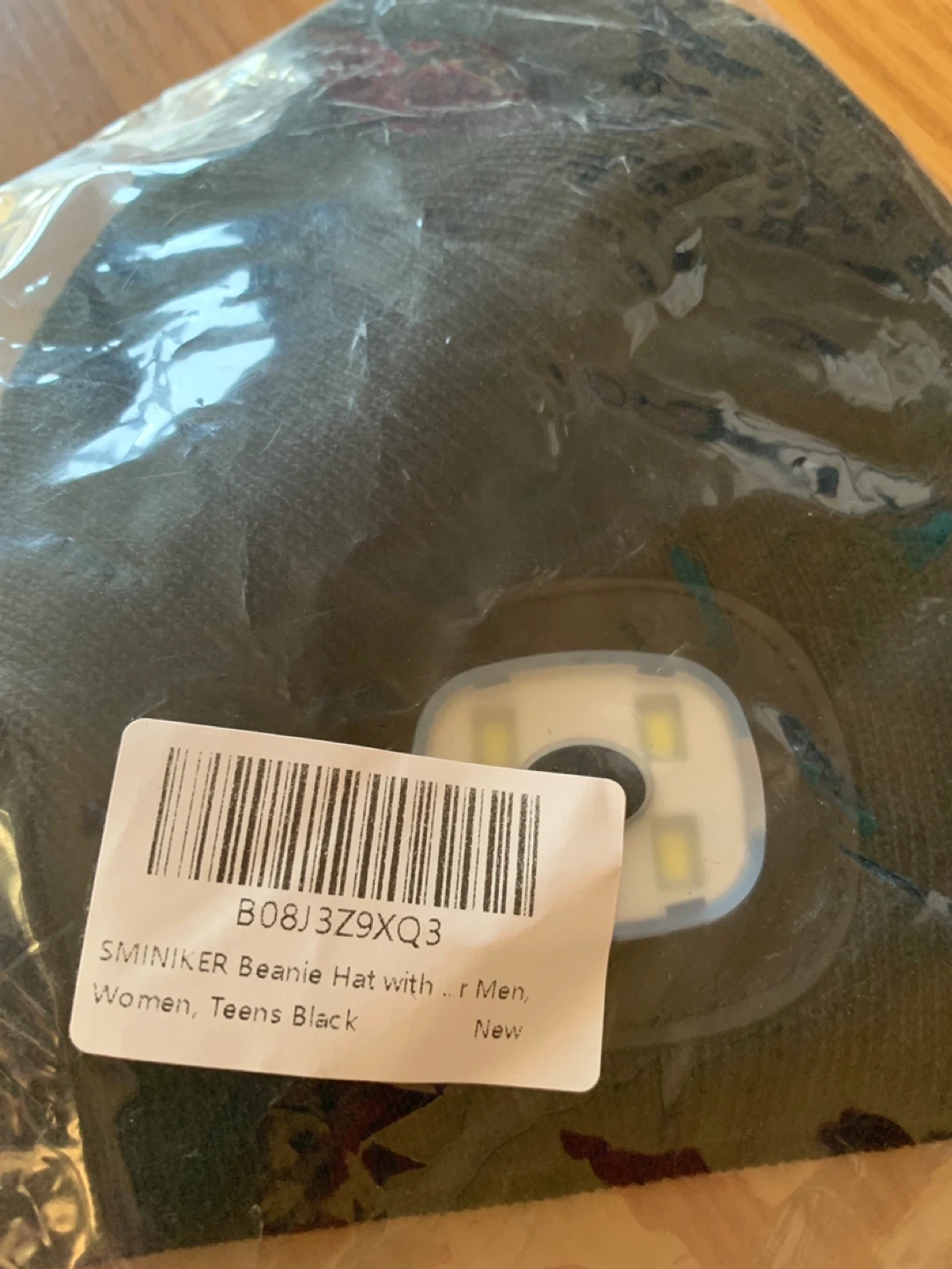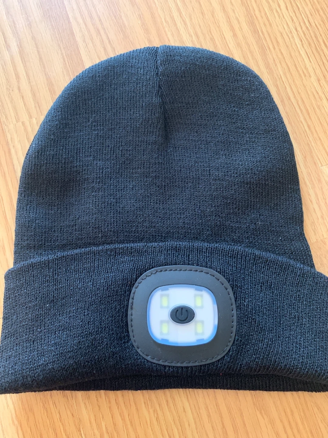 This black beanie hat from SMINIKER features a built-in LED light. It's designed for men, women, and teens. The LED is rechargeable and provides illumination.