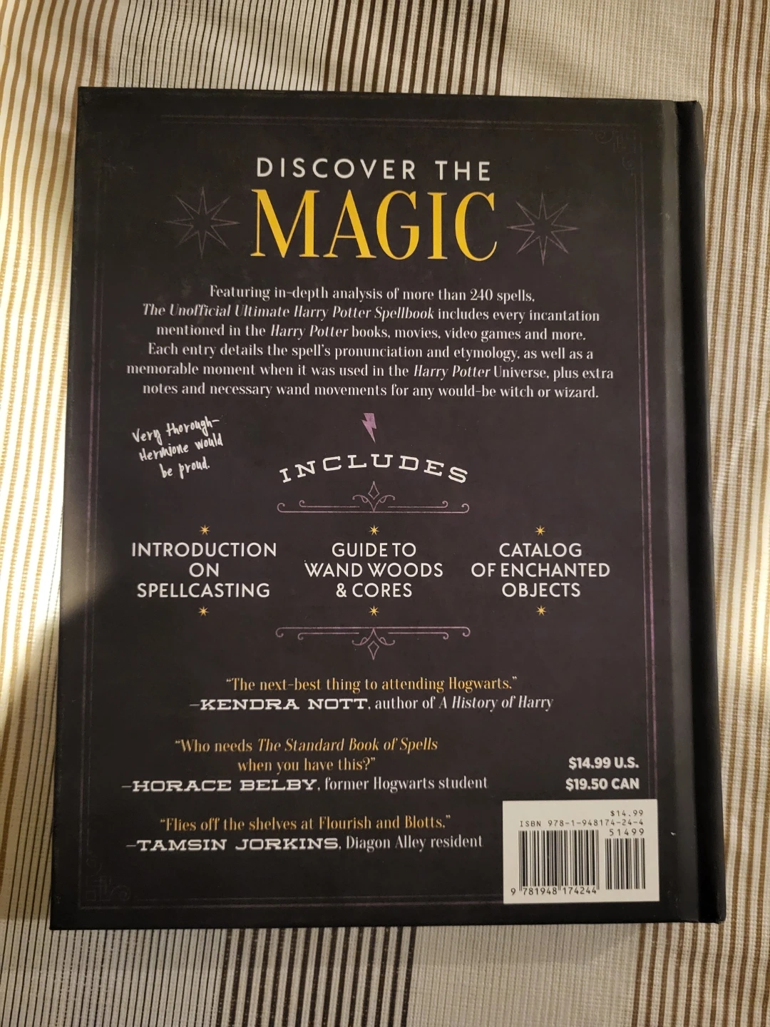 This spellbook offers an in-depth analysis of over 240 spells from the Harry Potter universe. It includes an introduction to spellcasting, a guide to wand woods and cores, and a catalog of enchanted objects. It's a complete guide to every spell in the wizarding world!