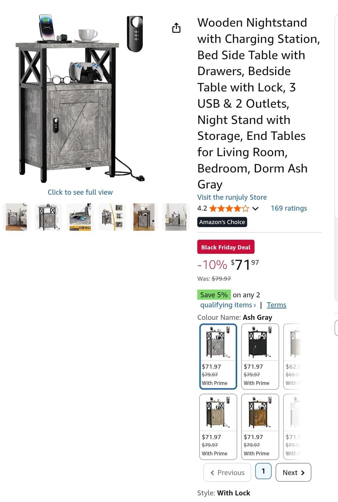 BRAND NEW Nightstand with Charging Station (WHITE)