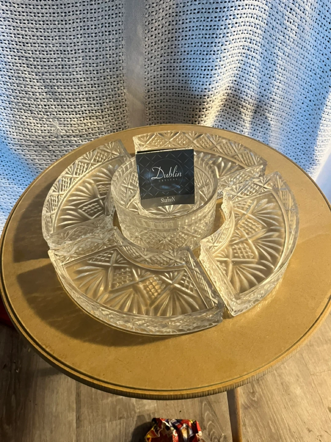 Selling a beautiful Shannon Crystal Dublin 5-part server. It's in great condition and would be perfect for entertaining or adding a touch of elegance to your table setting!