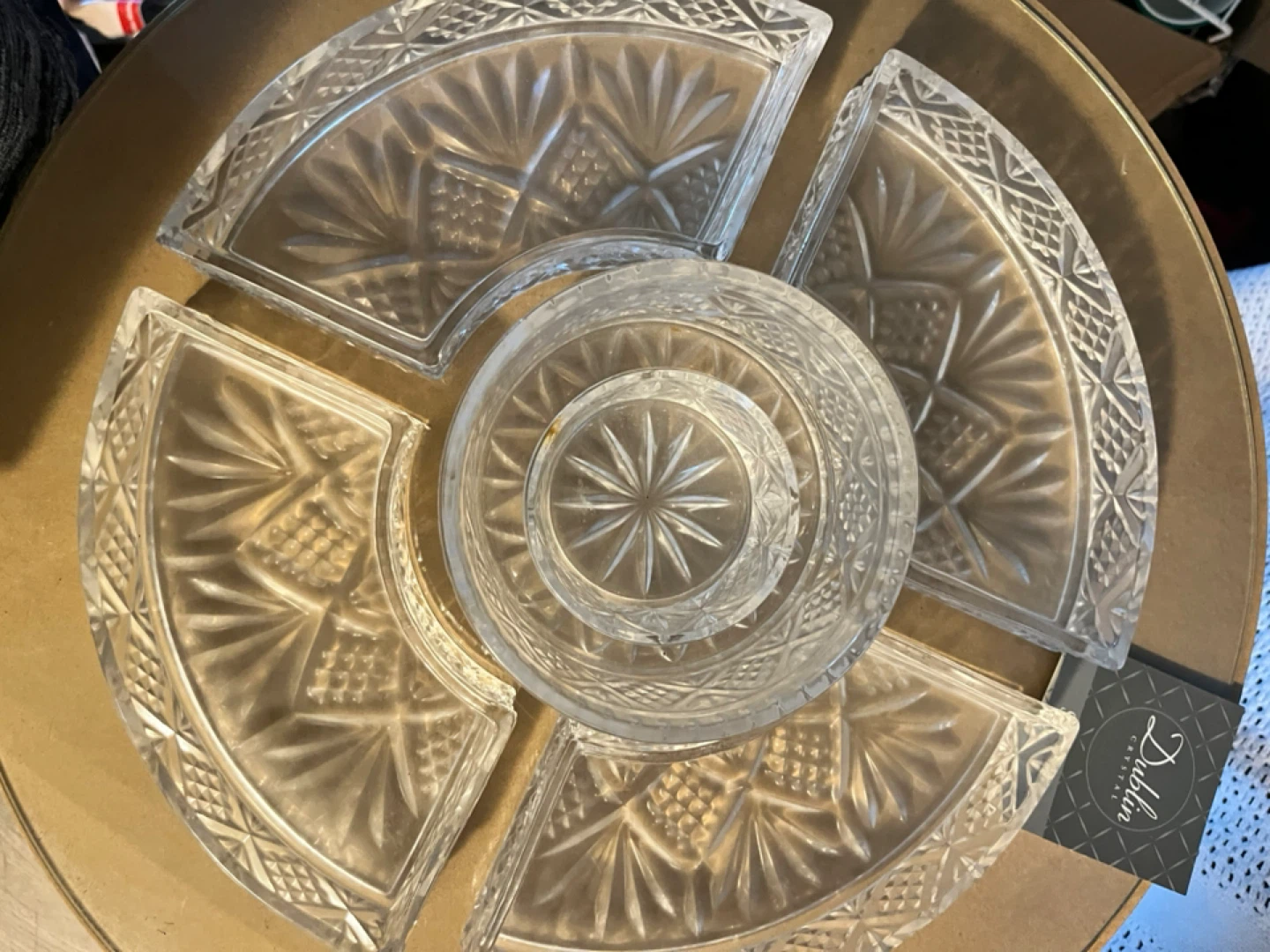 Selling a beautiful Shannon Crystal Dublin 5-part server. It's in great condition and would be perfect for entertaining or adding a touch of elegance to your table setting!