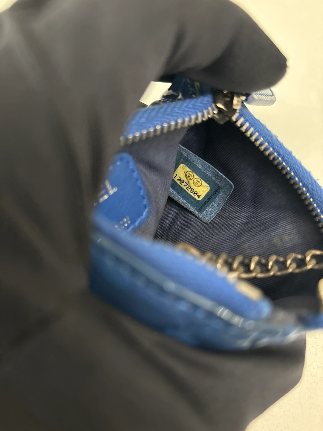 Chanel Blue Patent Leather Coin Purse with Chain
