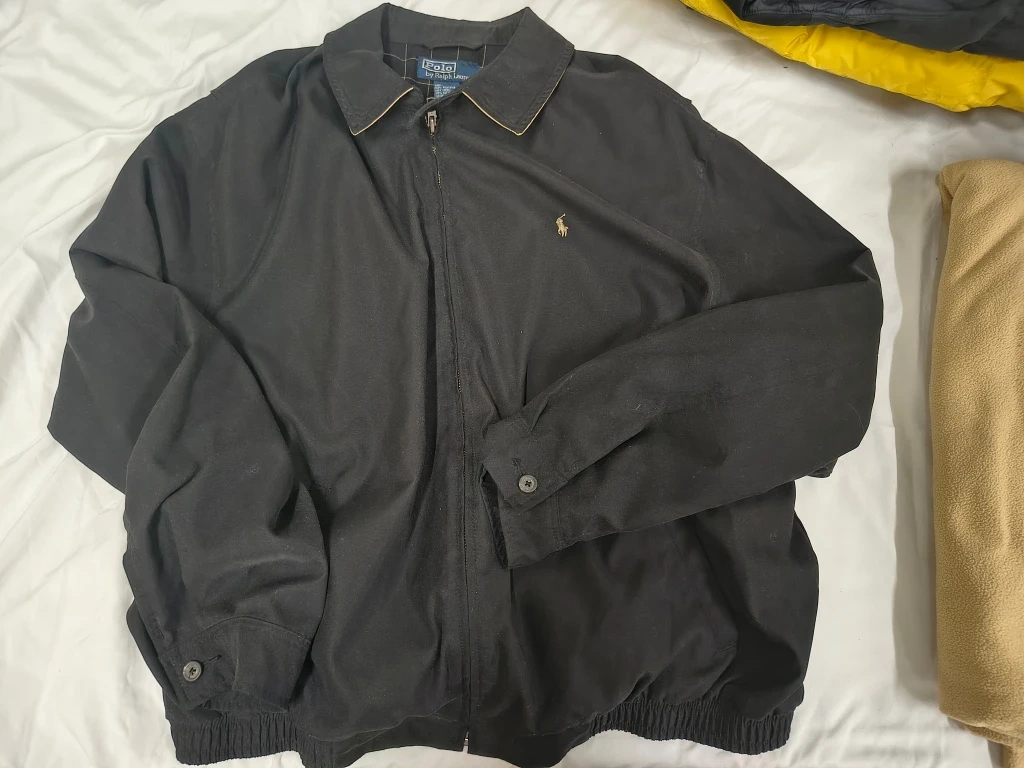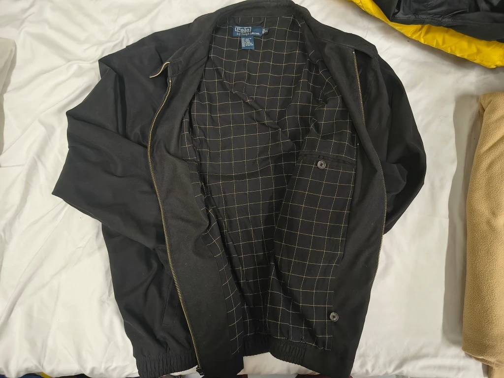 Selling a Polo by Ralph Lauren jacket in size 2XL. It's a classic black colour with a stylish plaid lining. The shell is made of 100% polyester, while the body lining is 65% polyester and 35% cotton. A great addition to any wardrobe!