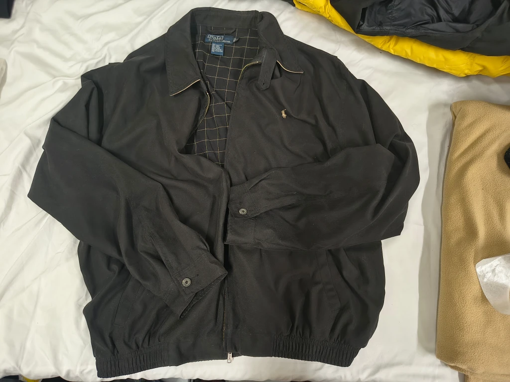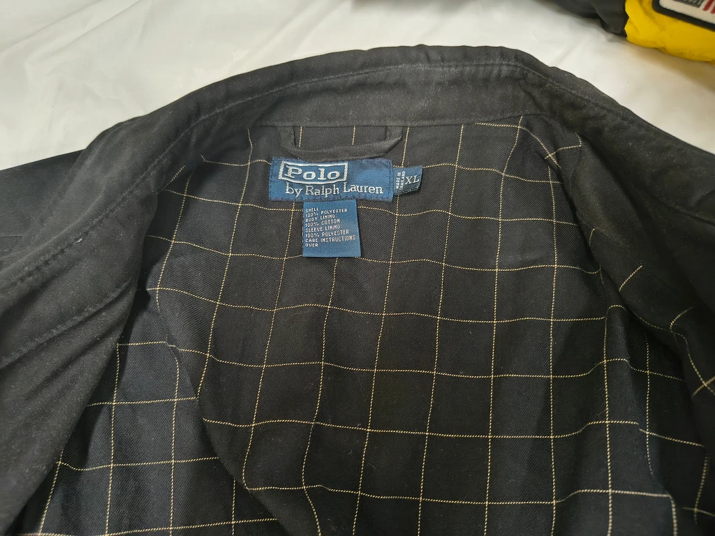 Selling a Polo by Ralph Lauren jacket in size 2XL. It's a classic black colour with a stylish plaid lining. The shell is made of 100% polyester, while the body lining is 65% polyester and 35% cotton. A great addition to any wardrobe!