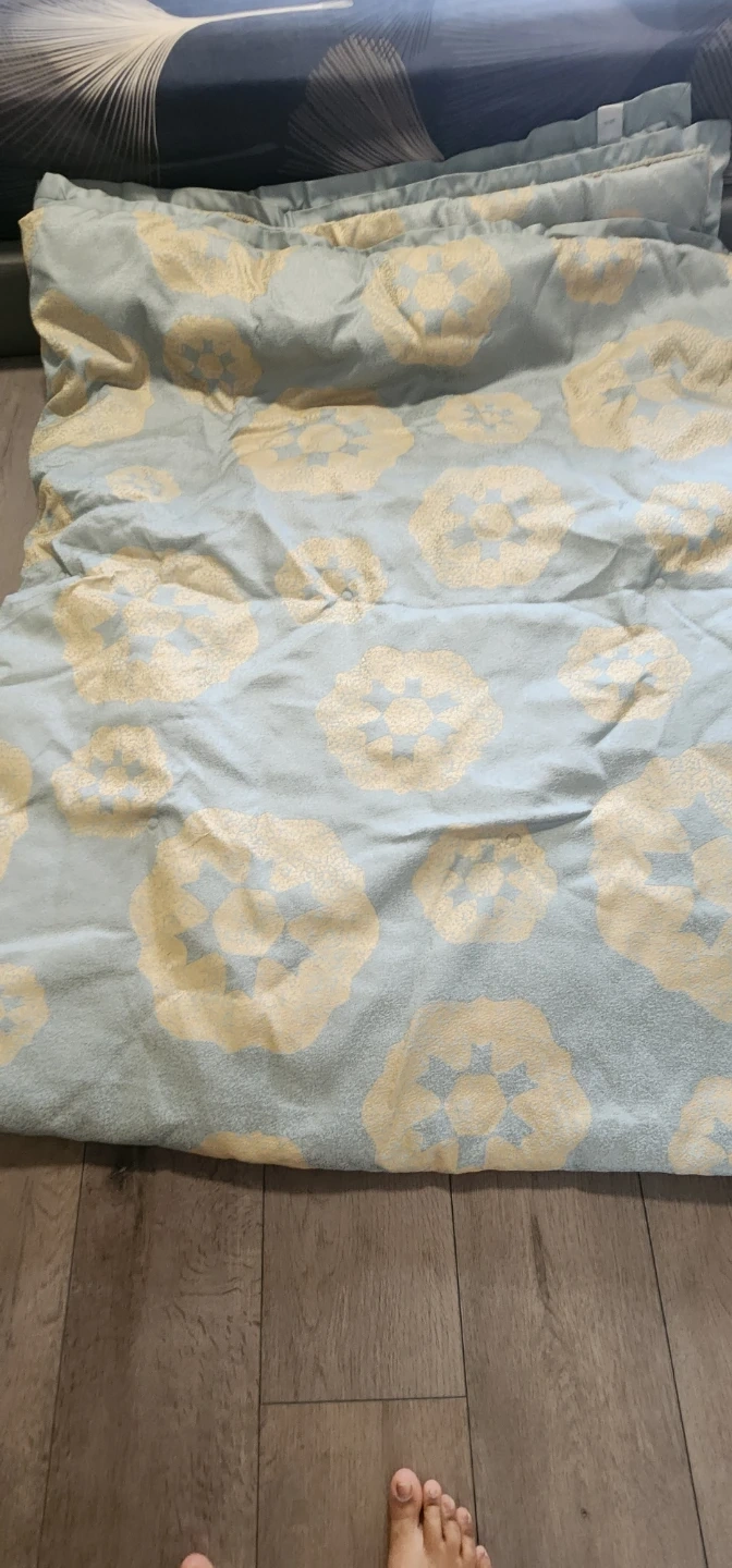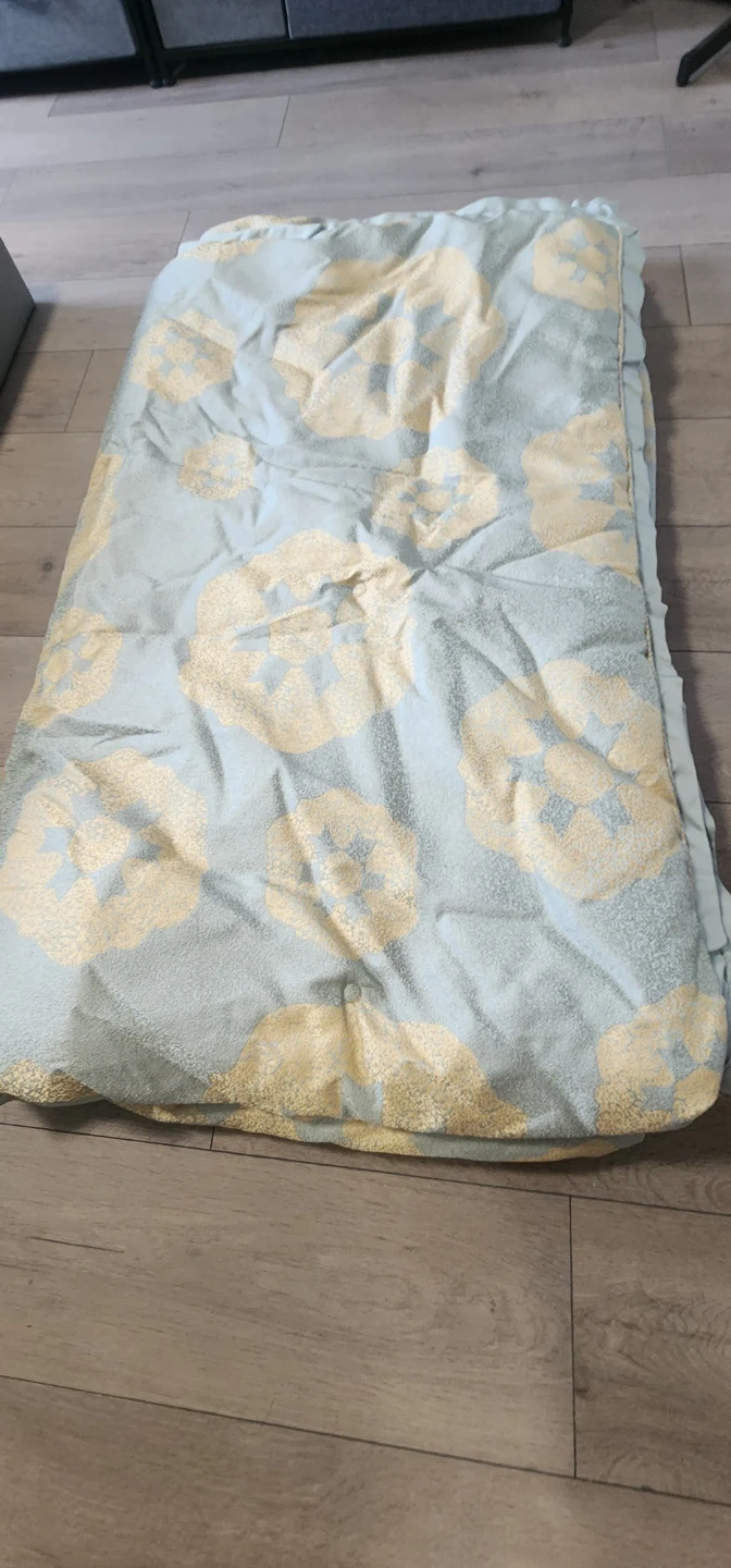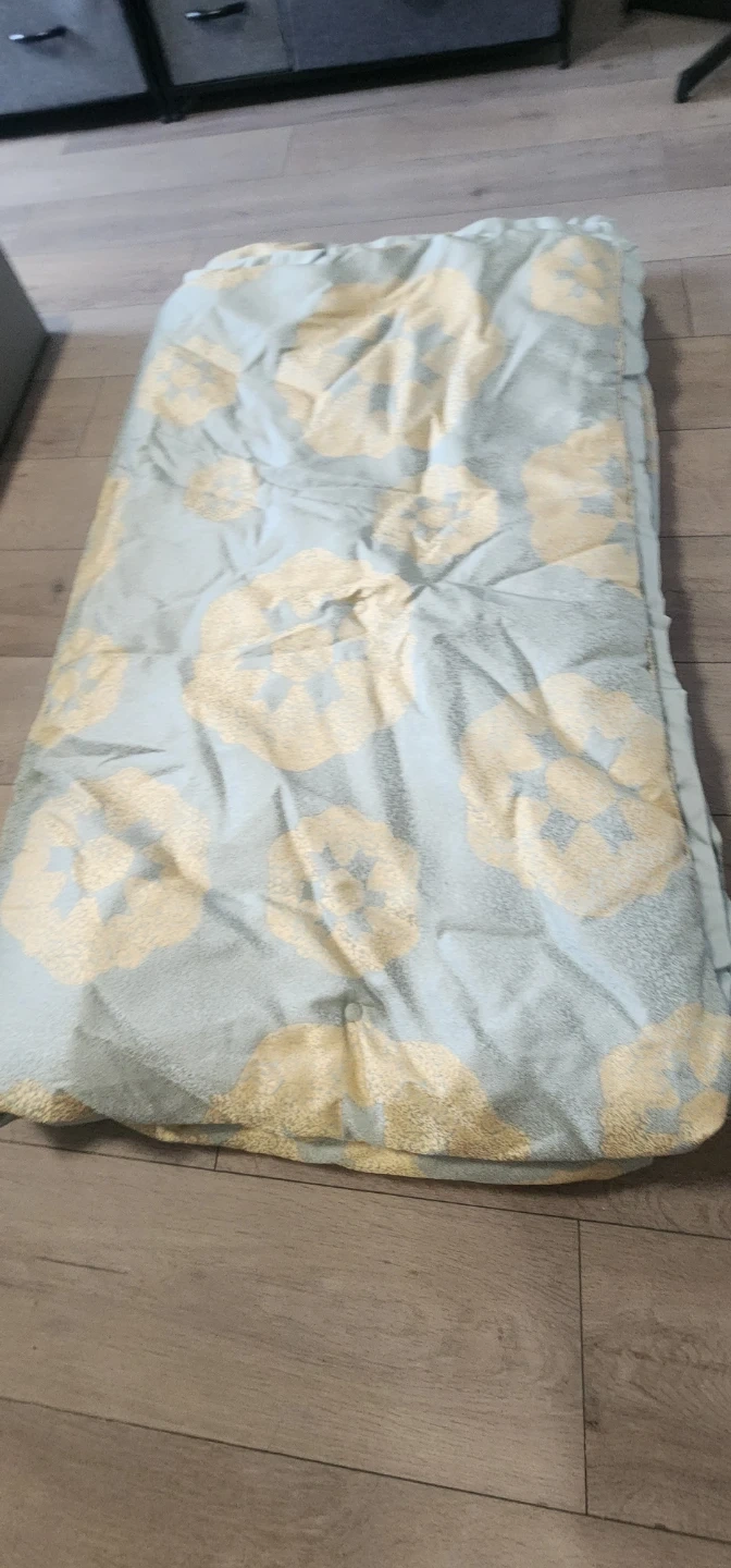 Selling a blanket with a lovely floral pattern! The colours are a soft blue and gold. It's in great condition and would be a cozy addition to any room
