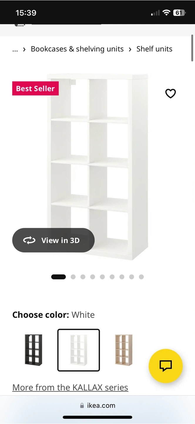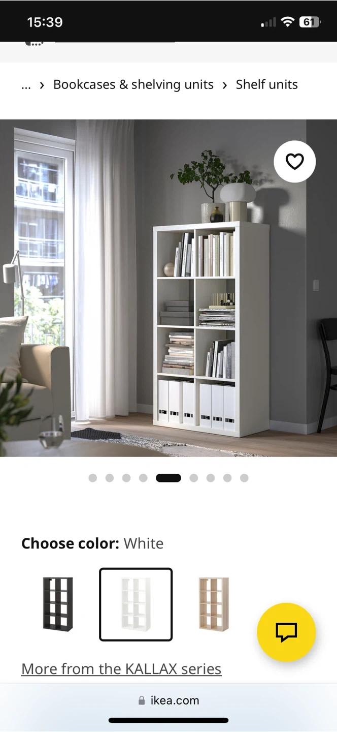 This IKEA KALLAX shelf unit is white and measures 77x147 cm. It has 8 cube compartments for storage. Perfect for organizing books and display items in any room!