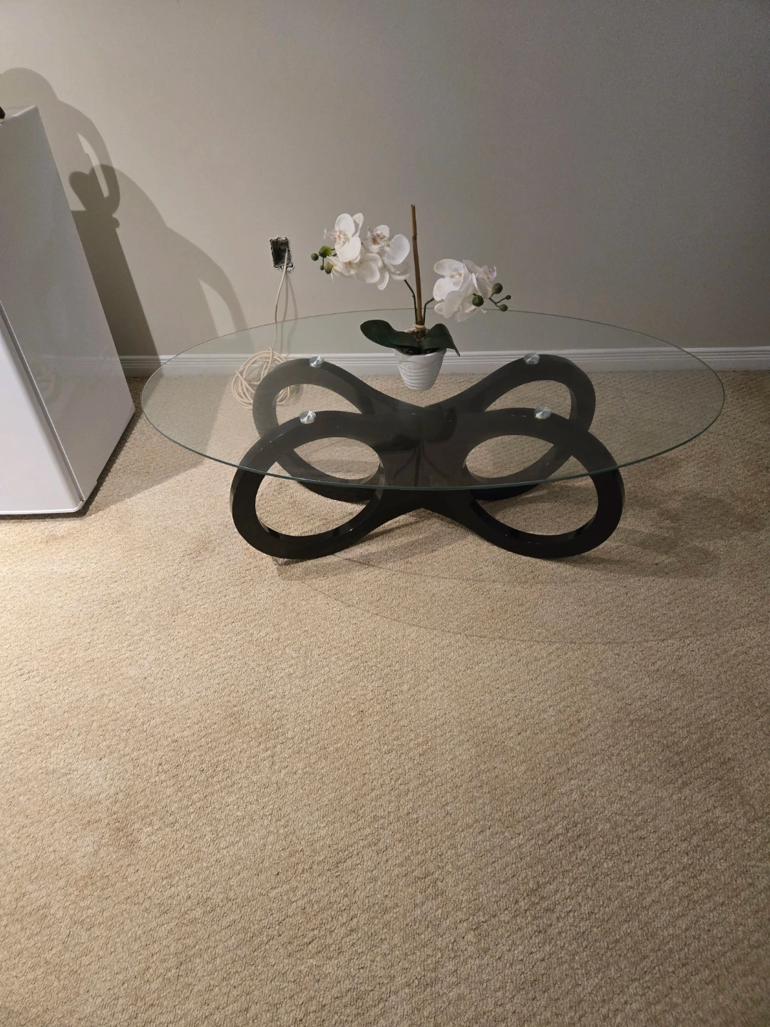 Glass Top Coffee Table with Black Infinity Base