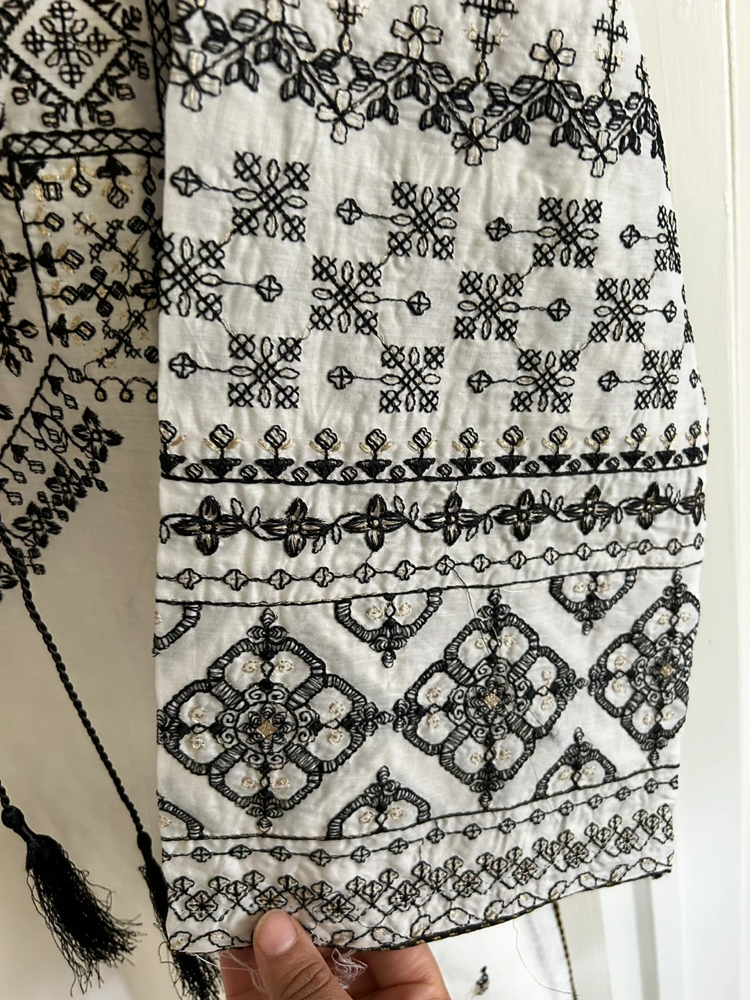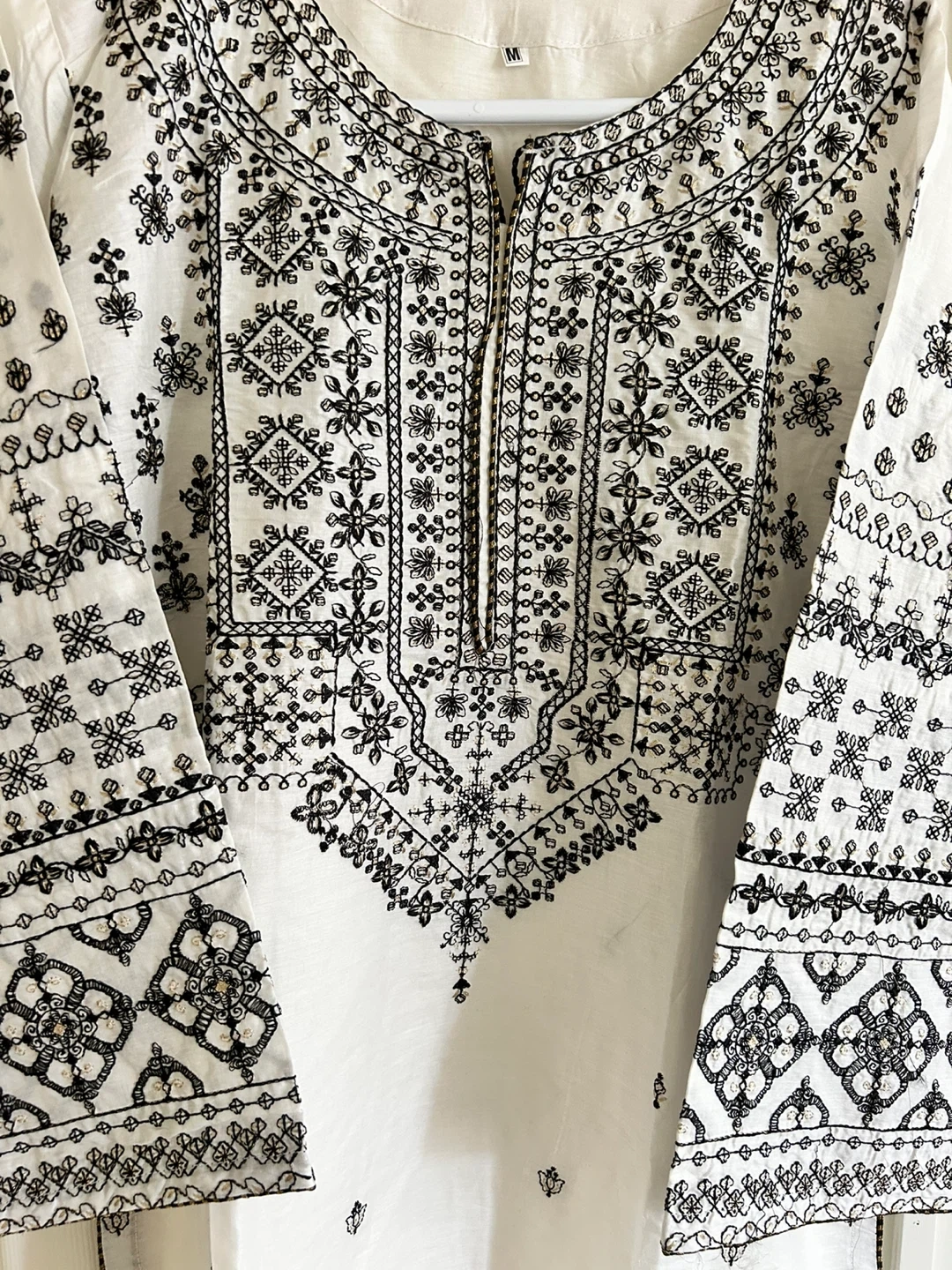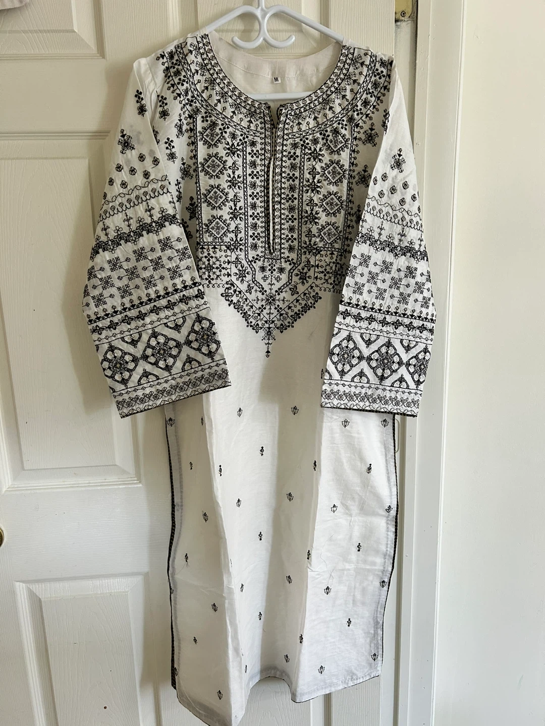 Selling a beautiful white kurti with intricate black embroidery. It's a size M and in great condition! The detailing is really lovely and it’s perfect for a casual or semi-formal occasion