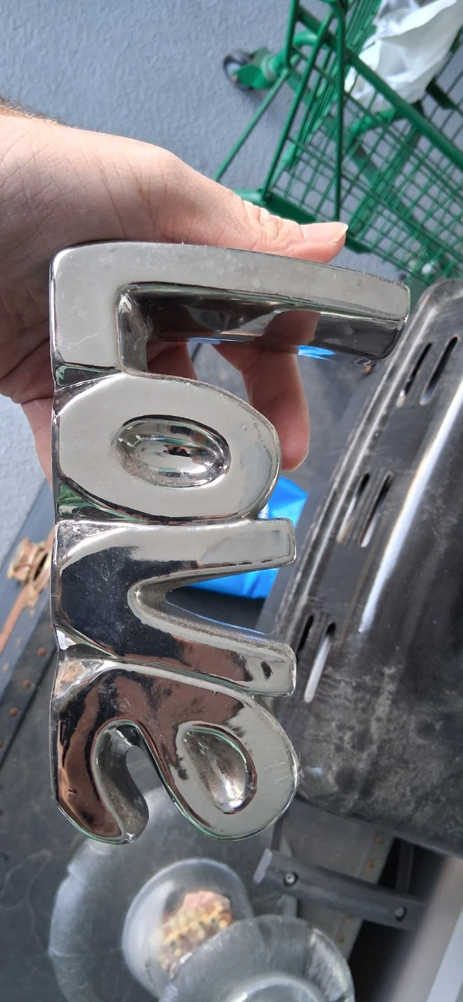 Shiny chrome "LOVE" word sculpture for home decor. It's made of metal with a polished finish. Adds a touch of modern style to any room!