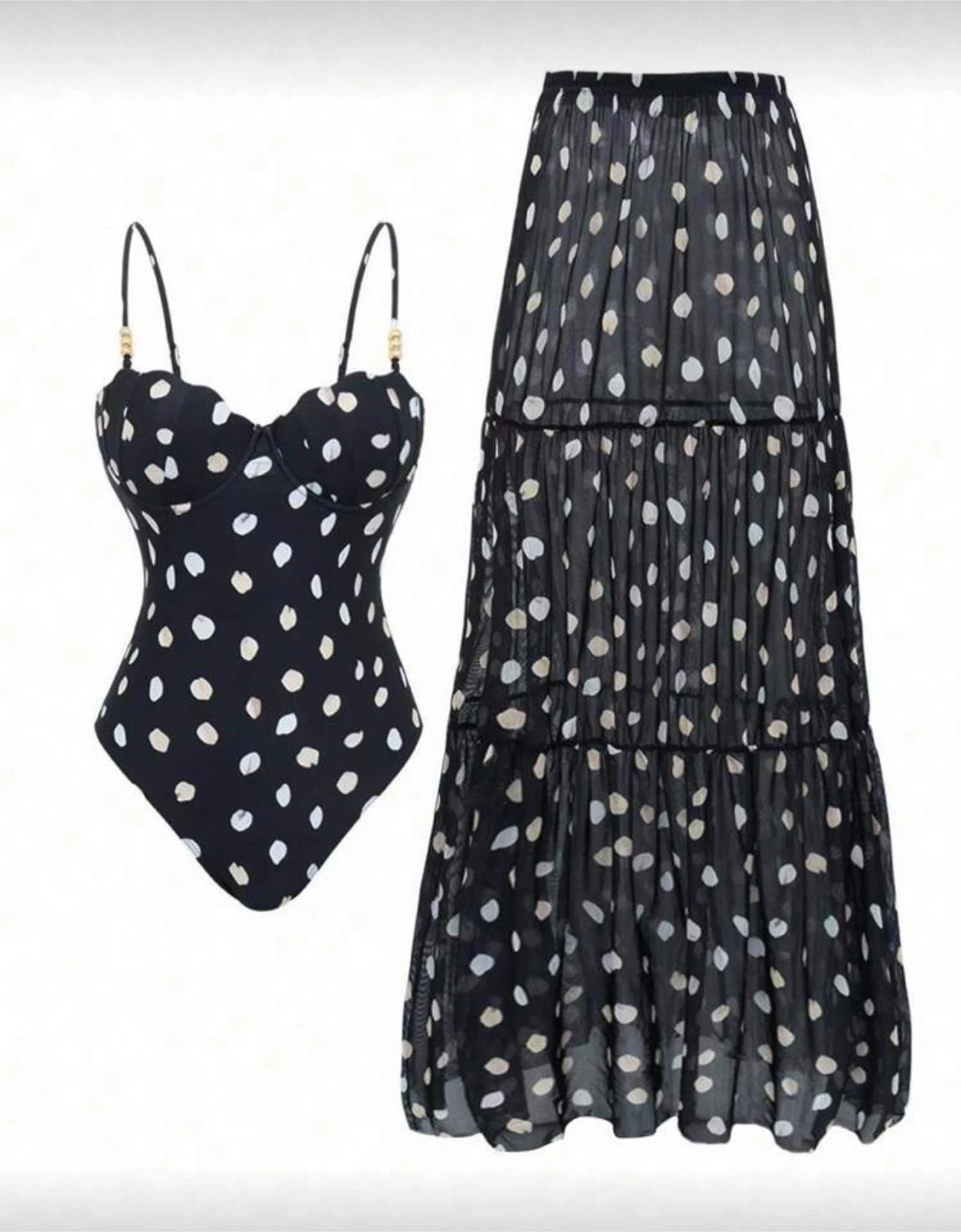 Black and white swimsuit and cover up set