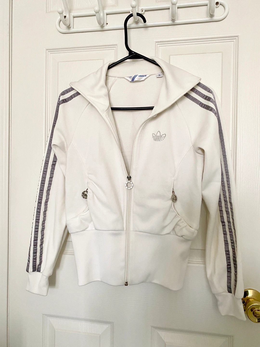 Adidas Women's White Track Jacket with Grey Stripes