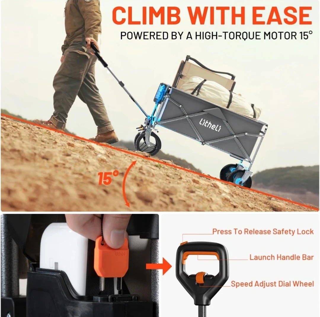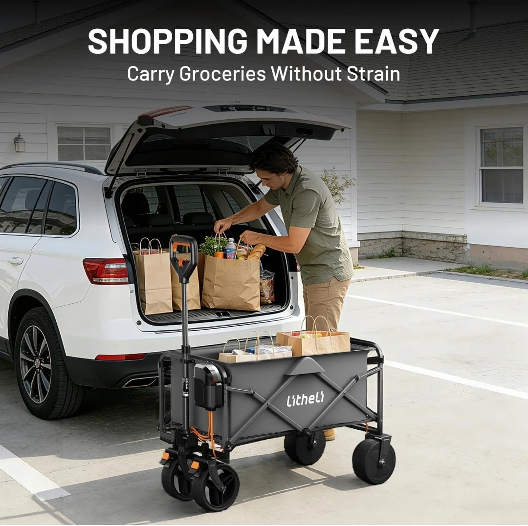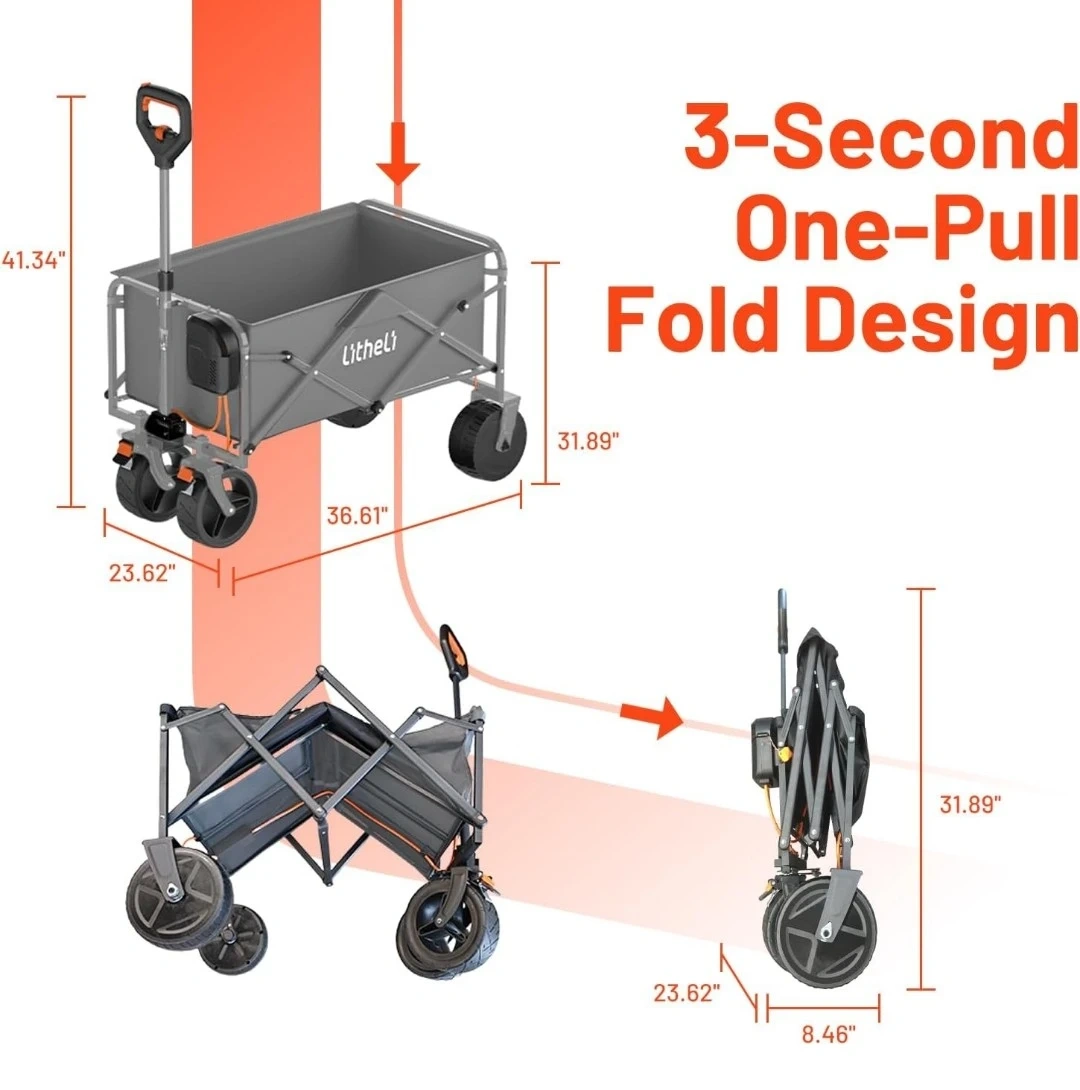 Litheli Electric Collapsible Wagon Cart with Brakes