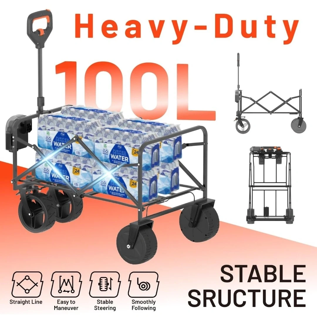 Litheli Electric Collapsible Wagon Cart with Brakes, 100L Grocery Cart with Wheels,Easy to Carry Folding Wagon for Camping, Gardening, Shopping
