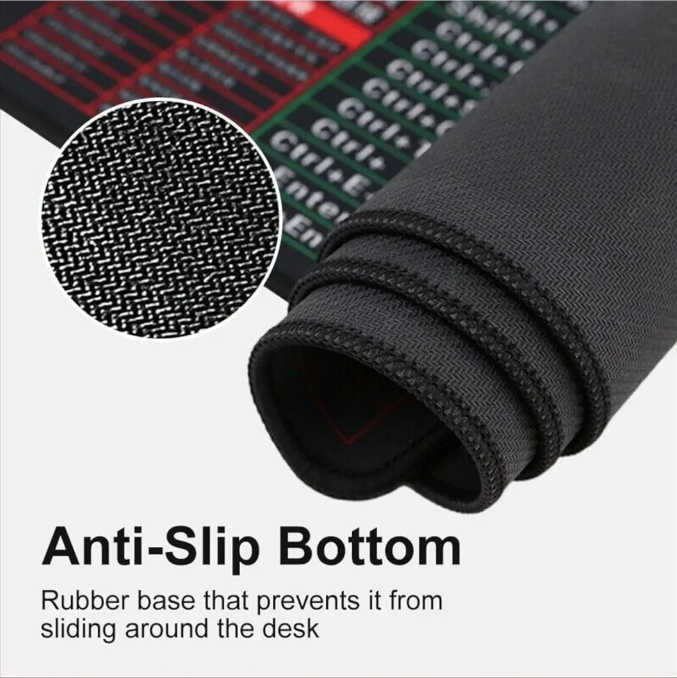 This new office mouse pad features Excel, PPT, and Word shortcuts to help you work more efficiently! The rubber base prevents it from sliding around your desk, and the edges are specially knitted to ensure the mousepad is more durable. It also has a double structure with high-density fiber treatment and natural rubber non-slip lines for enhanced stability. It's designed with anti-slip mesh on the bottom, and is washable too!