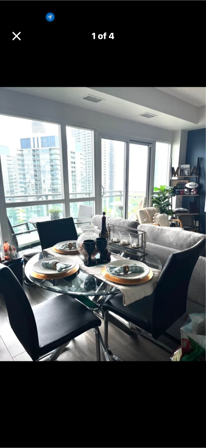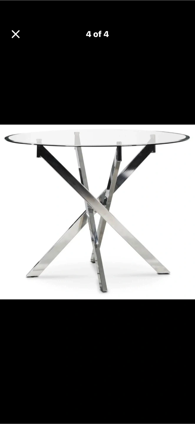 Beautiful glass top breakfast table from The Brick. It comes with three chairs! It can seat four people.