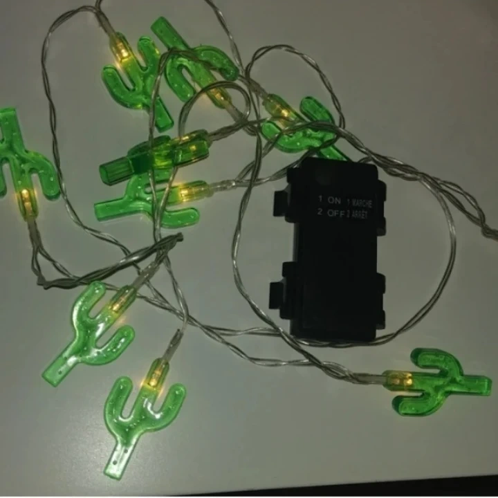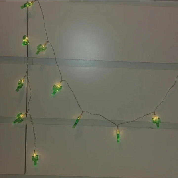 Green Cactus String Lights Battery Operated
