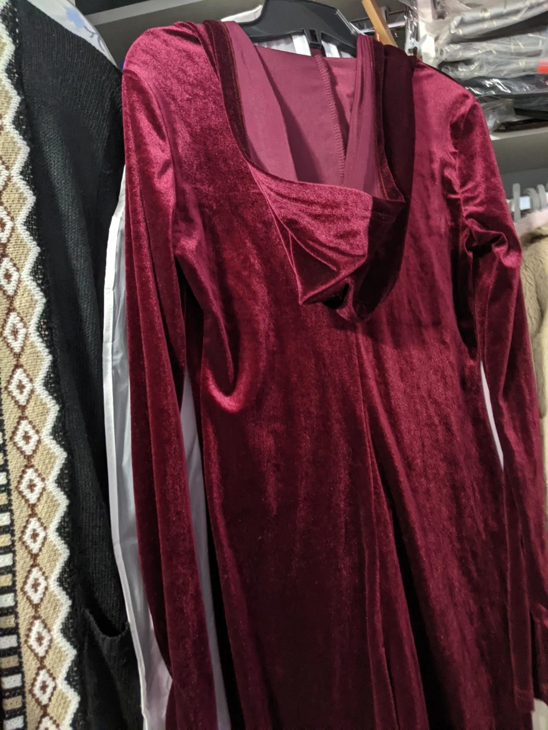 Burgundy Velvet Hooded Jumpsuit New