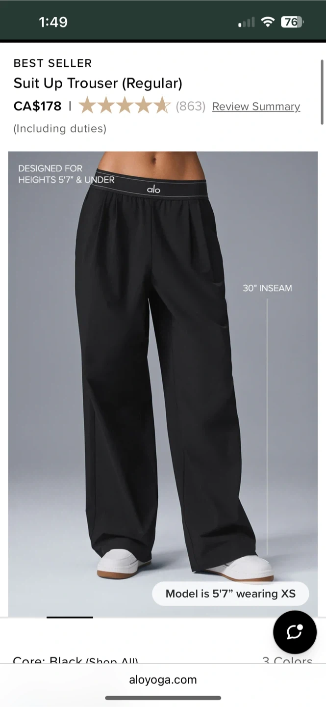 Buy & SellAlo Yoga Suit Up Trouser (Black)Alo Yoga Suit Up Trouser (Black)$70These Alo Yoga black trousers feature the signature elastic waistband. Perfect for active or casual wear!ConditionNewBrandAlo YogaWHERE TO MEETCheck LocationView MapSELLERverifiedSarahMoss Park600 reviews6 chats·3 favorites·89 viewsSEND CHAT TO SELLERHi Sarah! I’m interested in your listing.Hi Sarah! I’m interested in your listing.Get the Karrot app to chatSign In to chat