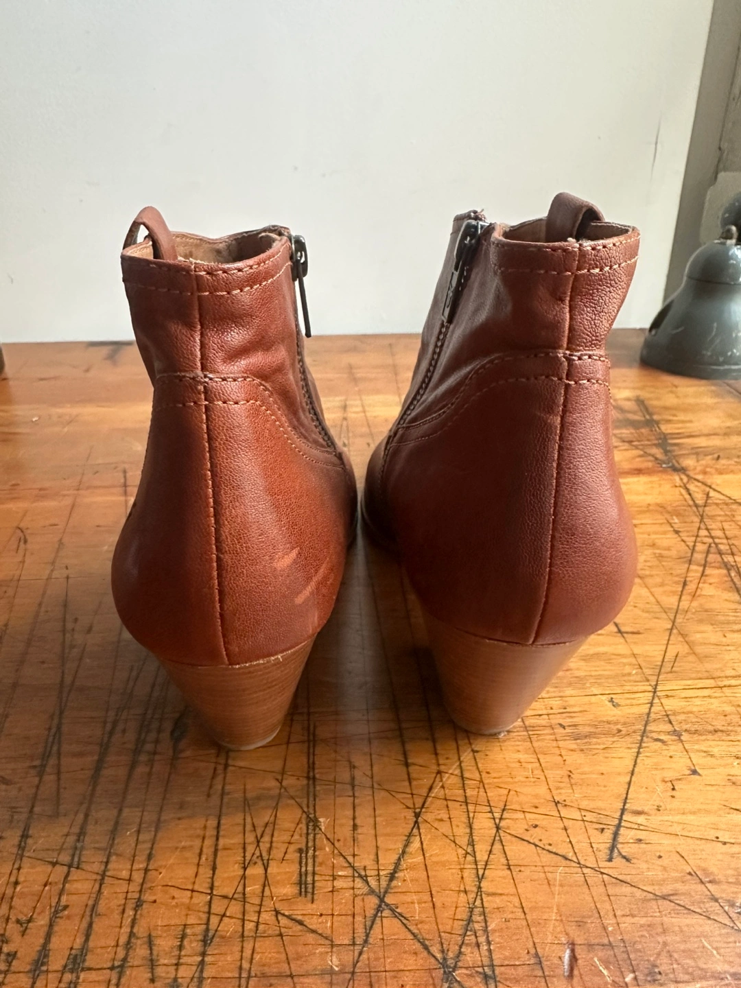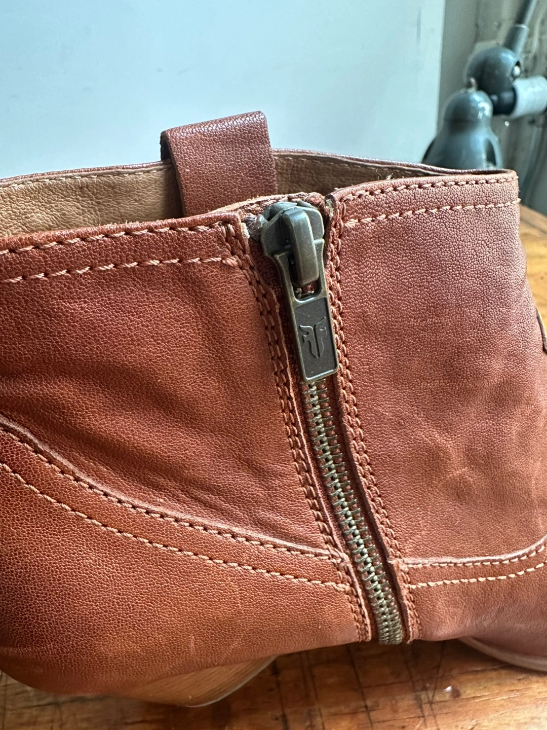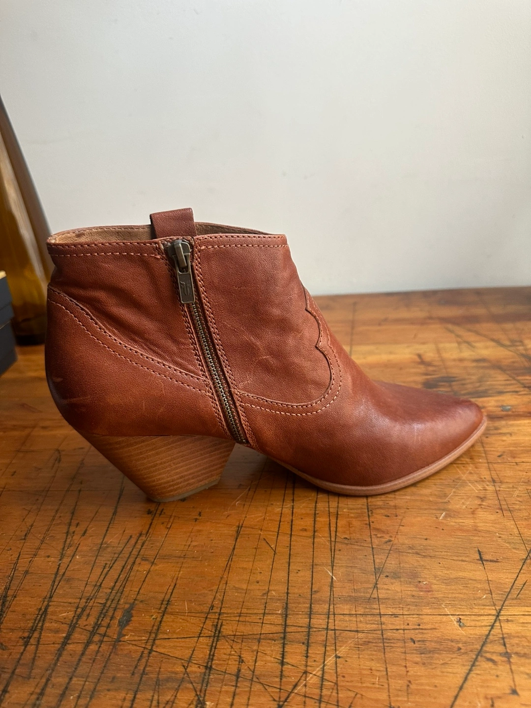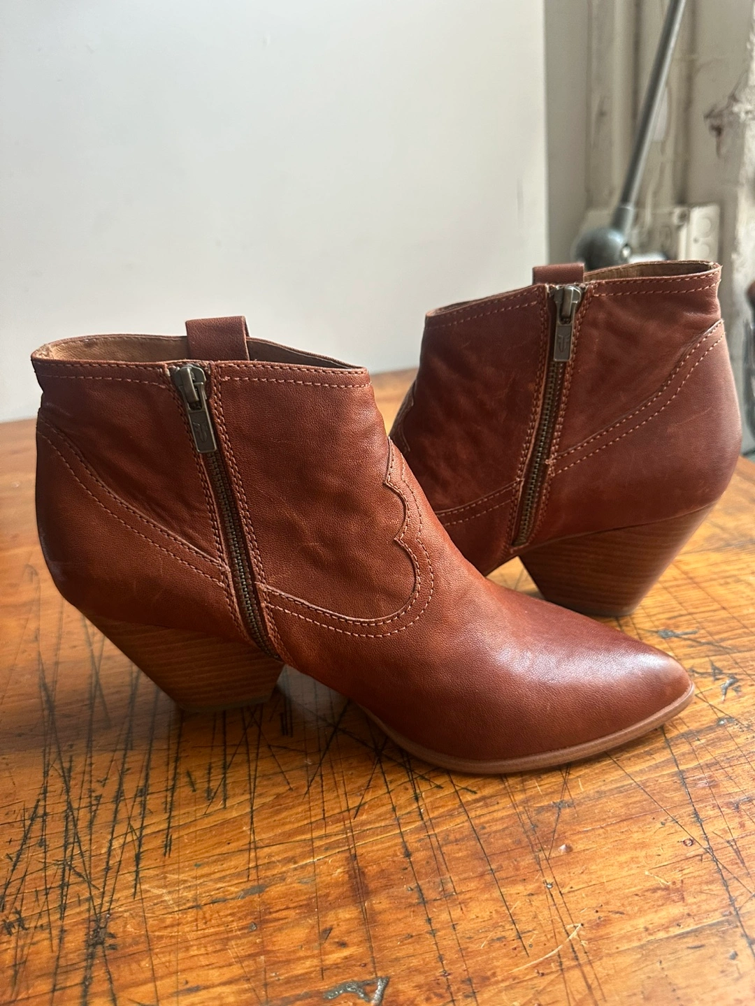 FRYE Reina Cognac Leather Stitch Detail Western Booties Size 10